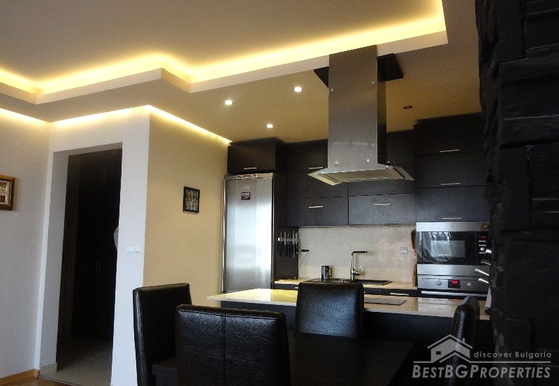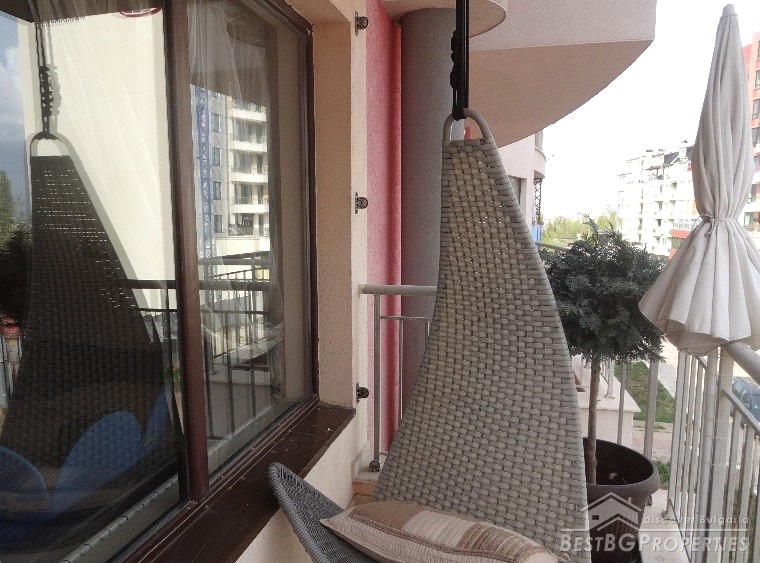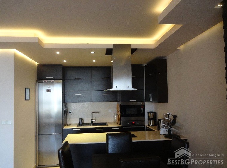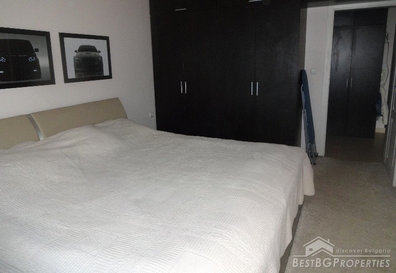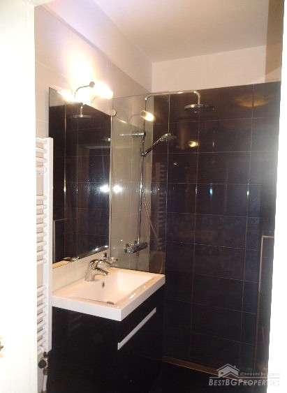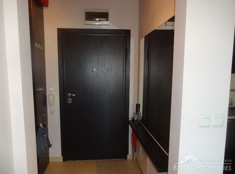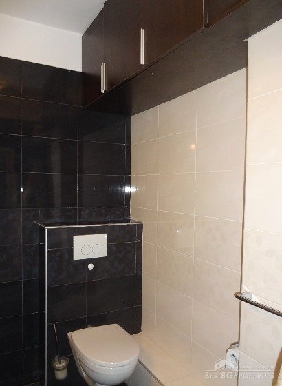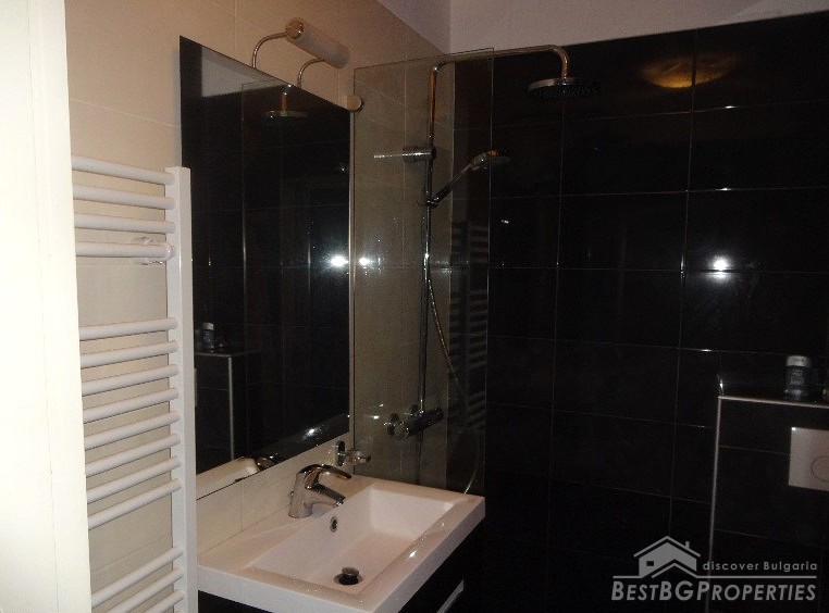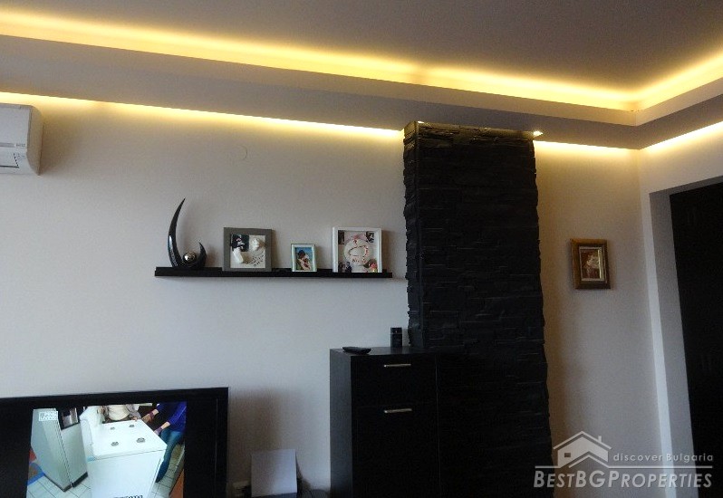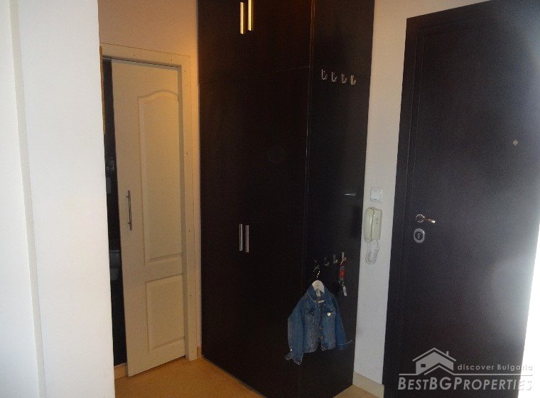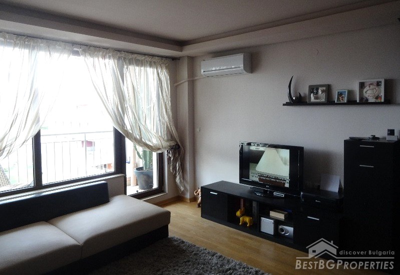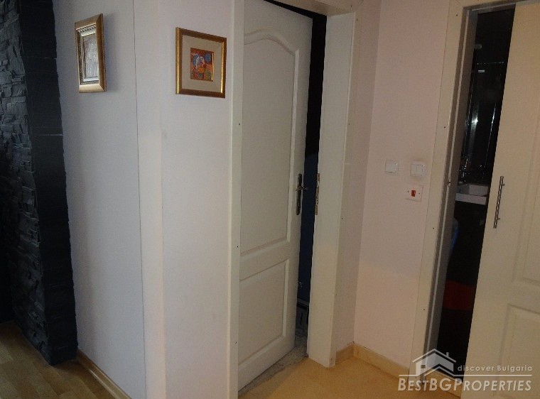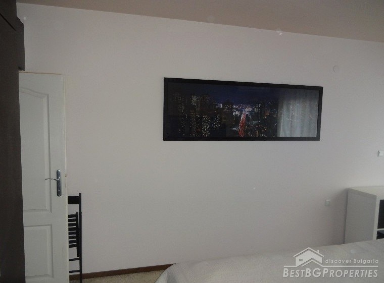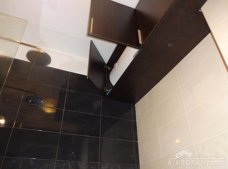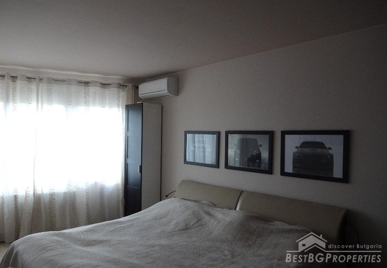The apartment is equipped with Hitachi air conditioners in the living room and the bedroom, 50 liter water heater, shower with thermostatic valve, radiators, large fridge, microwave, oven, sensor plot, solid front door with multipoint locking. The building has new metal entrance door. There are external electric roller shutters.