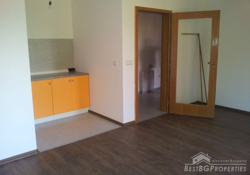 The apartment has total living area 58 sq m and consists of a living room with kitchen - laminate and terracotta, painted walls; bedroom with laminated flooring, painted walls; bathroom - fully equipped with shower, sink with cabinets, toilet, terracotta; corridor - painted, granite floor. The whole apartment has PVC windows, MDF doors and aluminum radiators. The property is internal, south-facing, on the second floor out of 4.