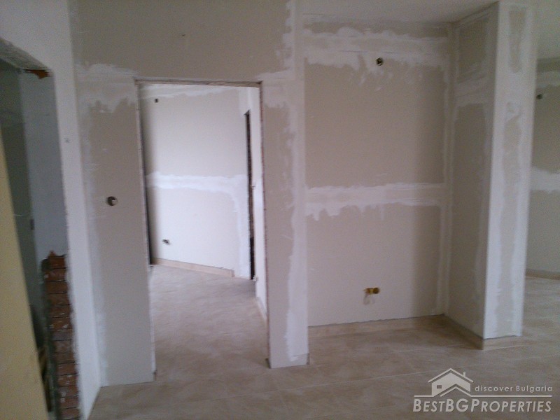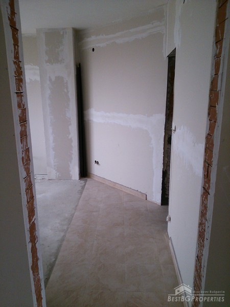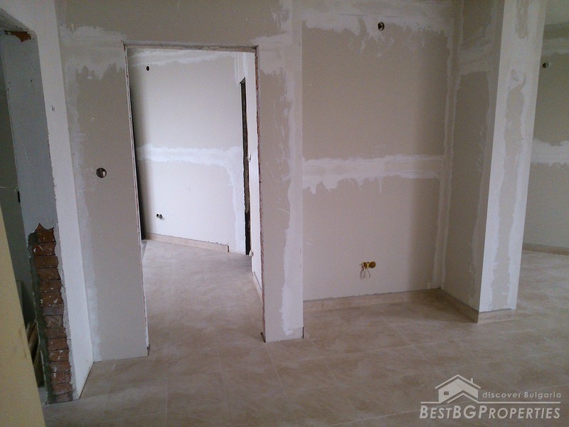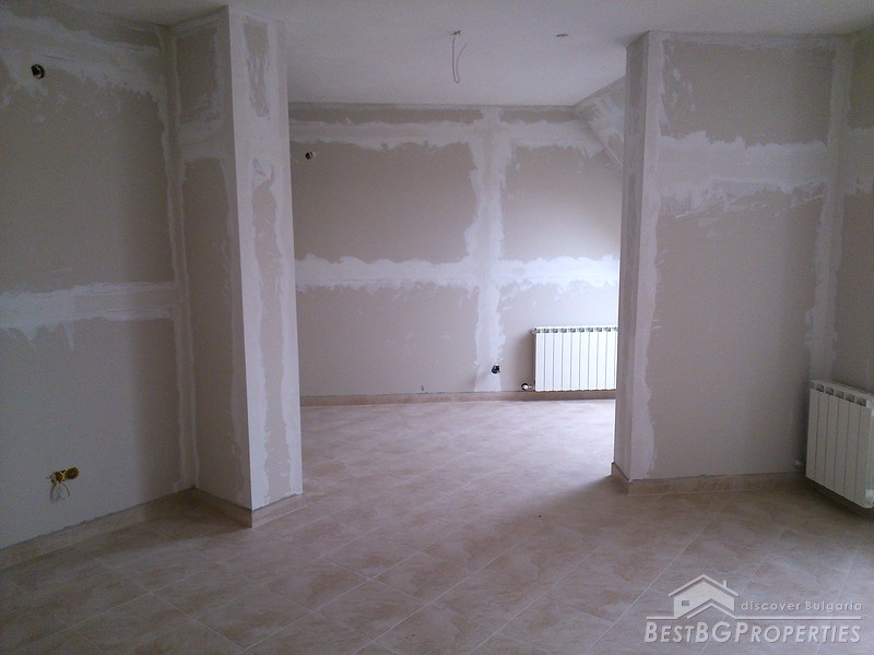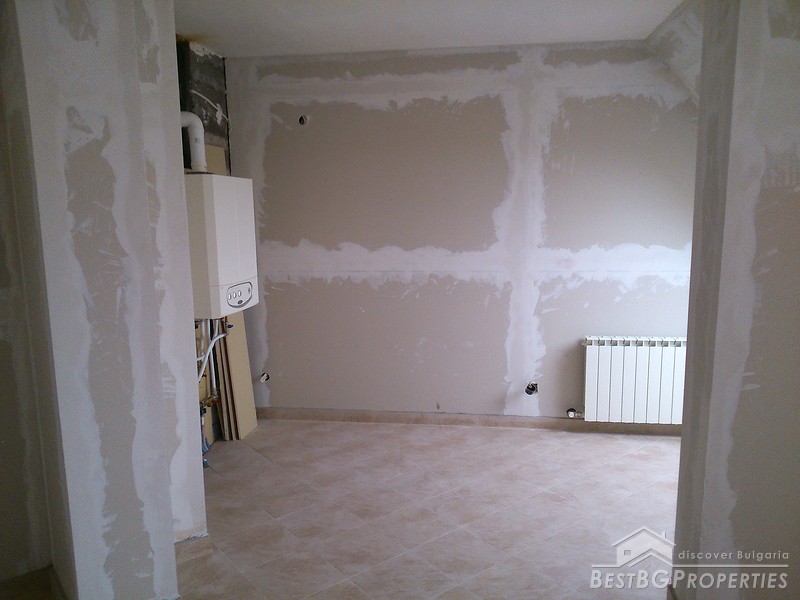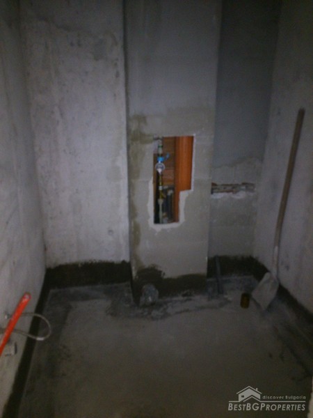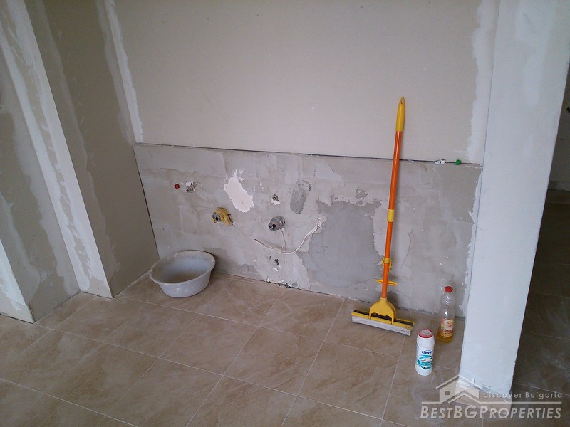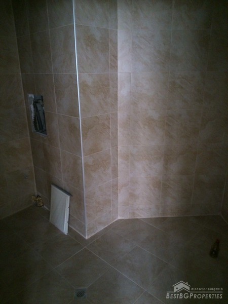 The living area is distributed between two bedrooms with private bathrooms, spacious living room with kitchenette and a balcony. One of the bedrooms also has a balcony. Both the terraces are with area of 5 square meters. The apartment is located on the last – fourth floor. The ceilings are slopped in only one of the bedrooms. The apartment is gasified. The finishing is according the Bulgarian standard – on plastering and putty. There is very good isolation.