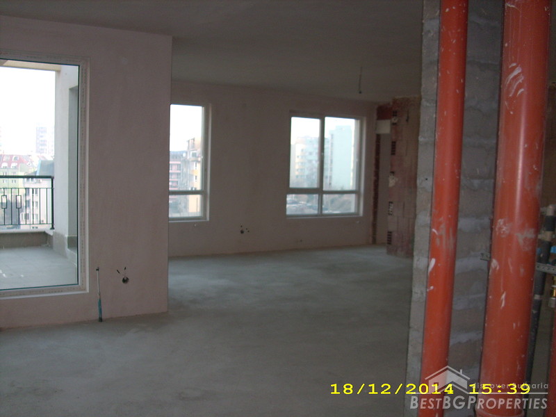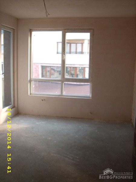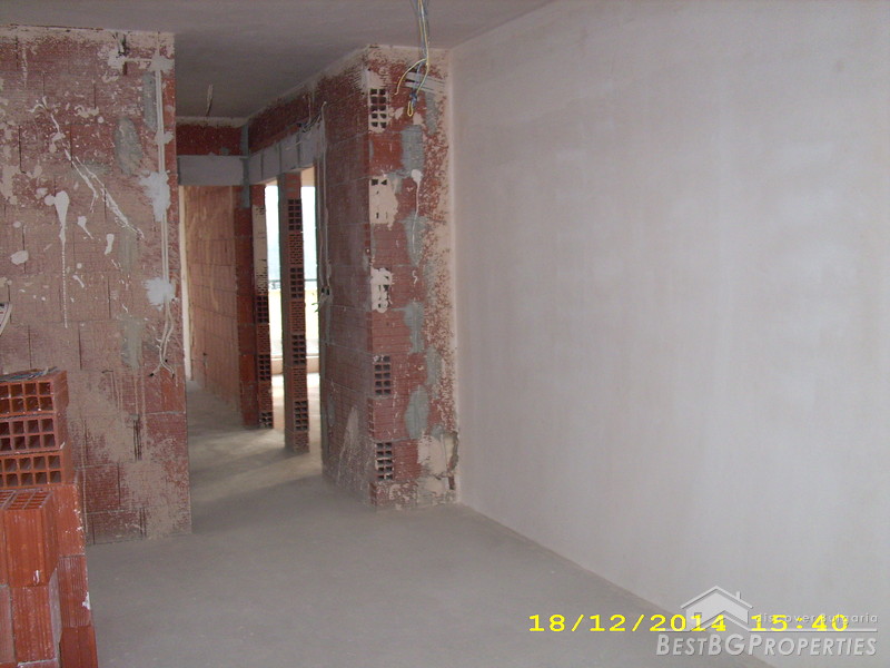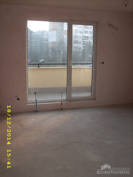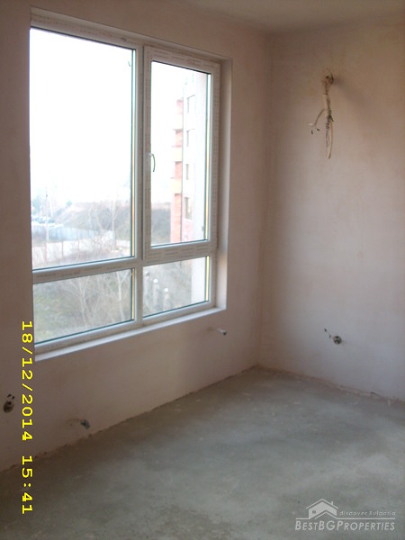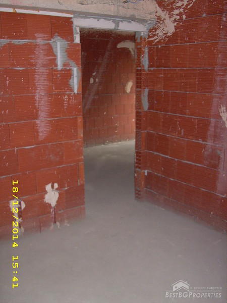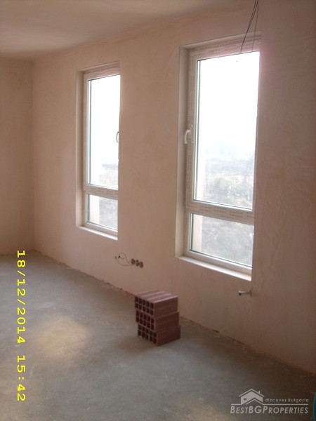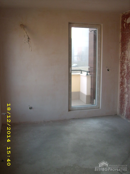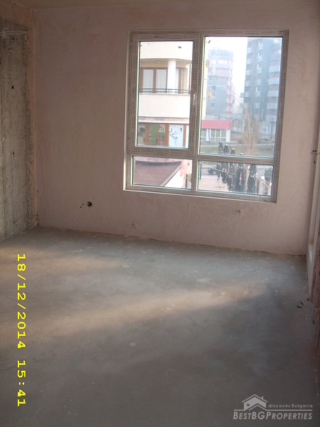 The property is on the sixth floor and there are four bedrooms, bathroom with WC and a balcony with floor heating. The apartment is equipped with gas, thermal isolation. The stage of completion is at Bulgarian standards – on plastering and putty. The final finishing would be according to your own taste and desires.