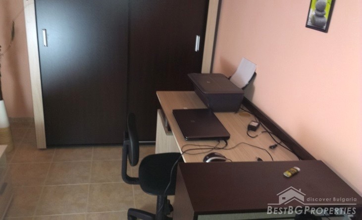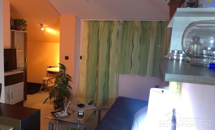 The studio has total living area of 38 sq m. It is on the last sixth floor with beautiful view. The apartment has large, spacious balcony which can be glazed and used for additional living space and the kitchen to become a bedroom. There is an amazing panorama towards the Sofia International airport.