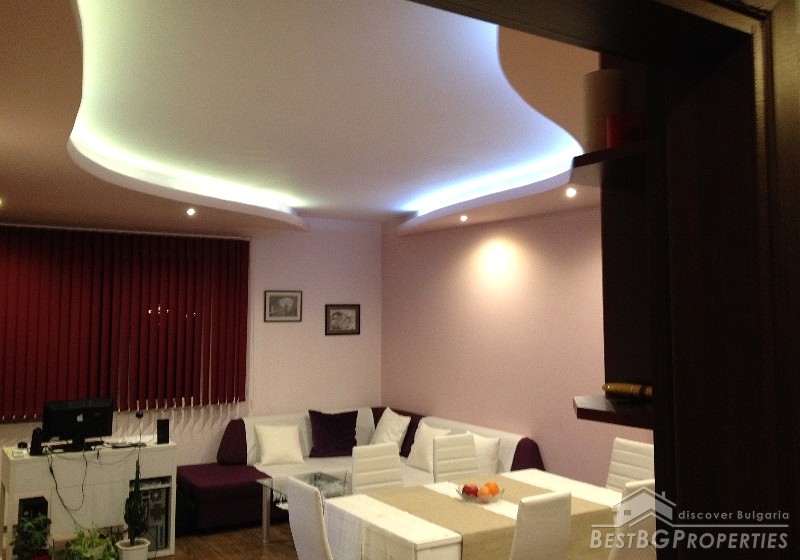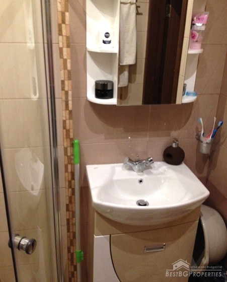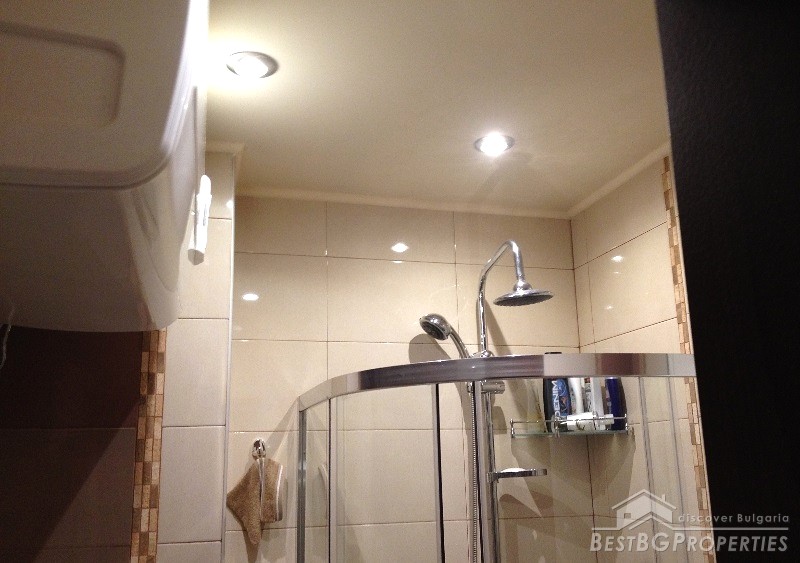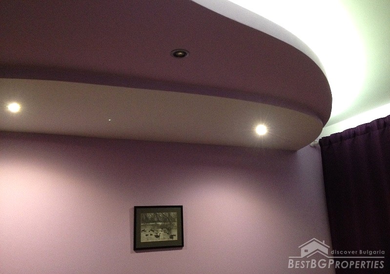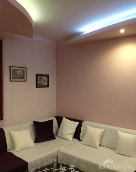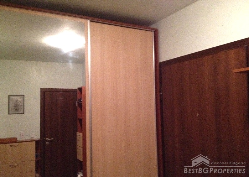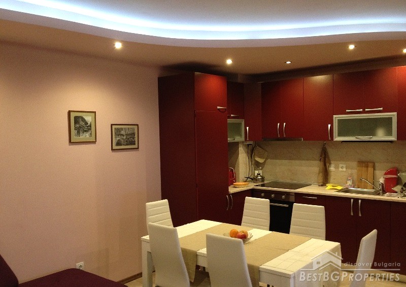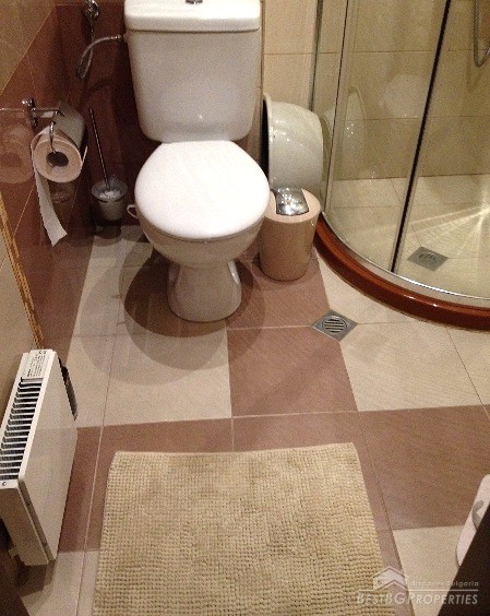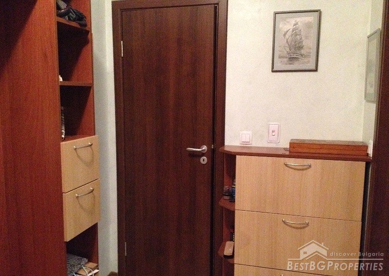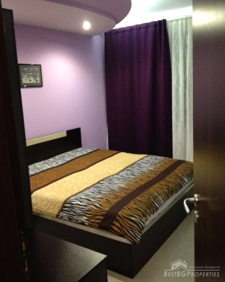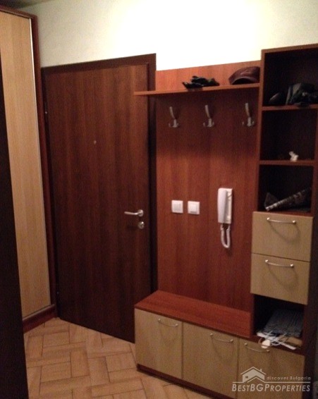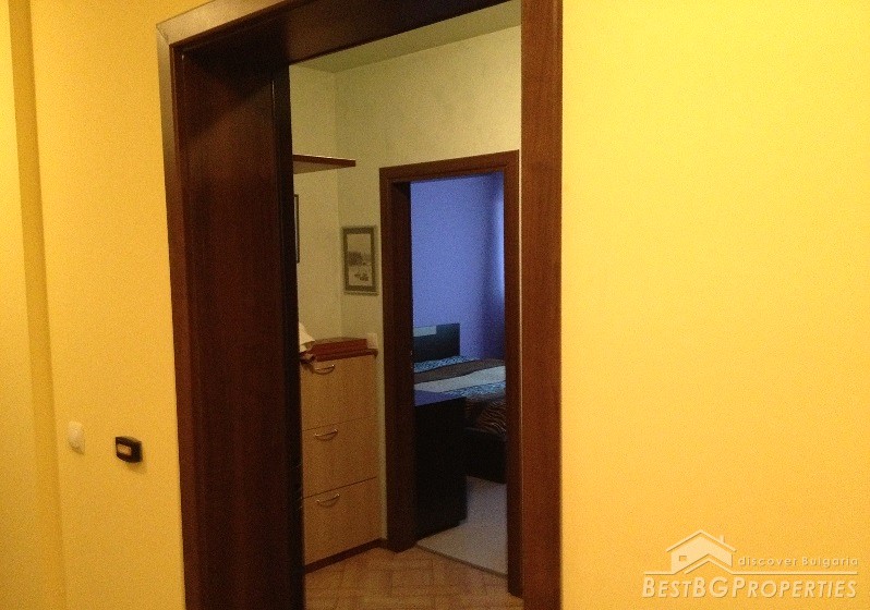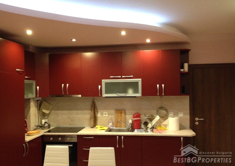 The apartment has clean living area of 60 sq m and the following distribution: entrance hall, living room with kitchenette, bedroom, bathroom and a balcony. The rooms are without transition. The price includes full and complete new furniture and equipment – all electrical appliances. The heating right now is via air conditioning, but the apartment also has central heating.
