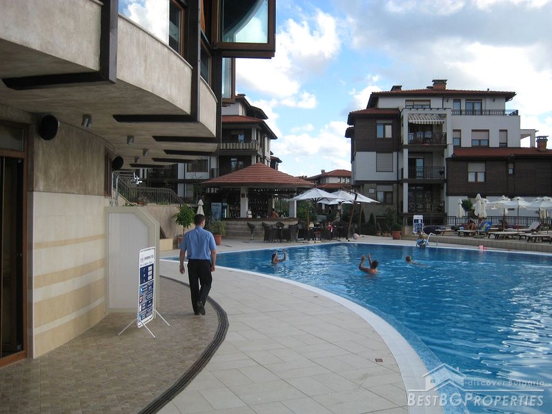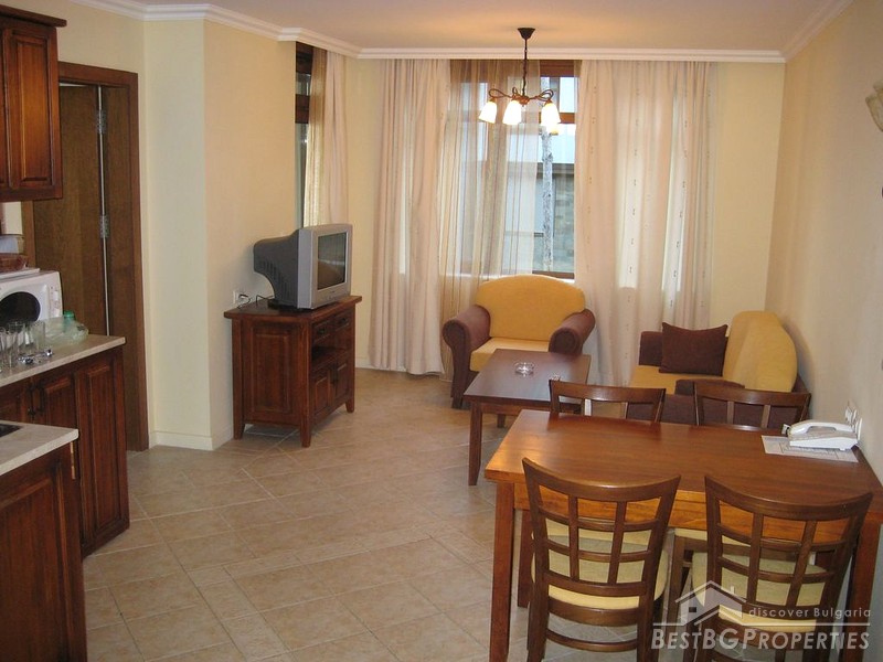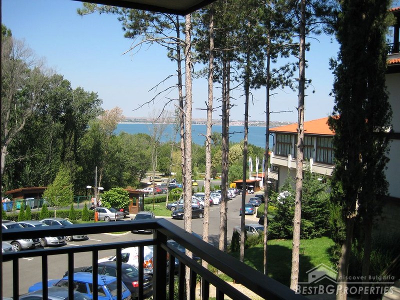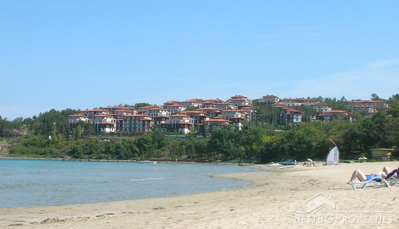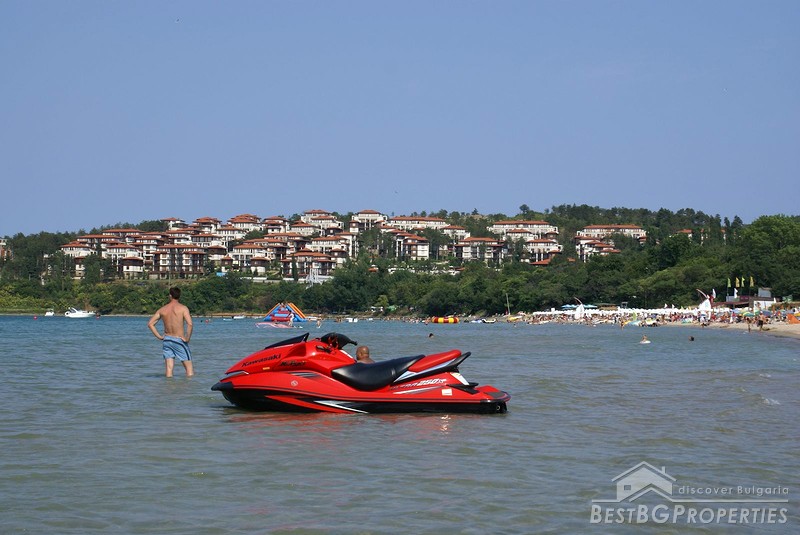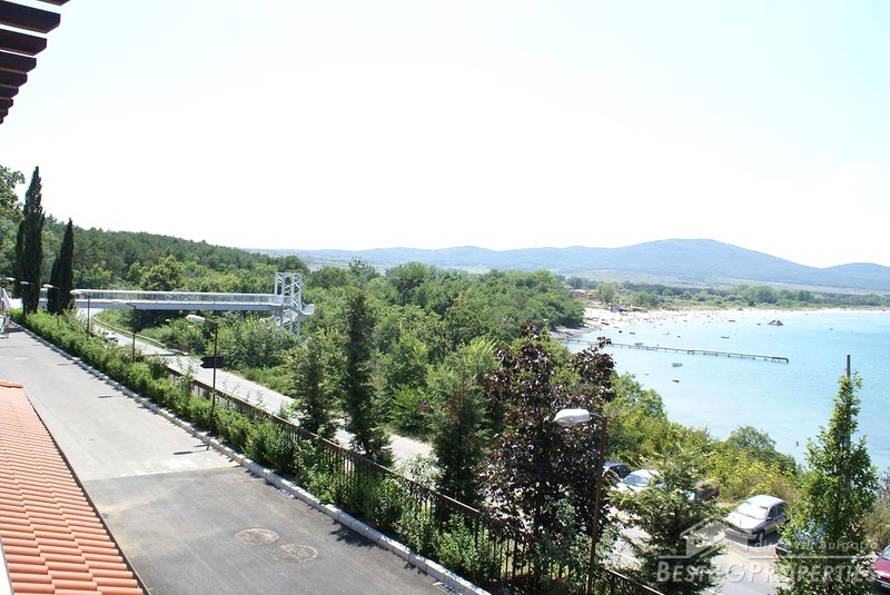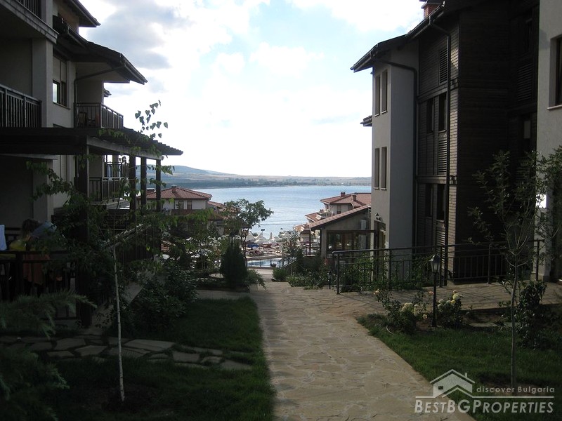 This is an apartment for sale, located near the famous seaside resort - Sozopol. It is situated in a luxurious first line complex. The apartment is two-bedroom type and comprises total living area of 76 sq m. The living area is distributed between a living room with kitchen box and dining area, two bedrooms and a bathroom with WC. The apartment is situated on the second floor and has sea view. It is for sale completely finished and furnished. The apartment is finished according the highest requirements, and the furnishing is high quality and very stylish. There is a fully equipped bathroom and WC, fully equipped kitchen. The apartment is ready to move in.