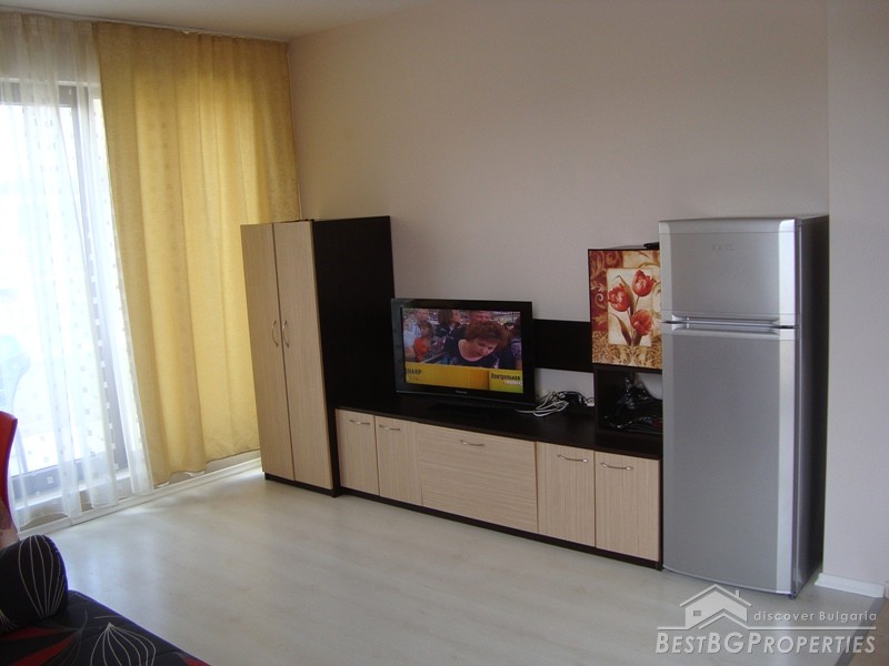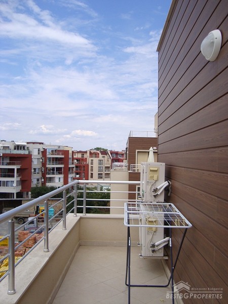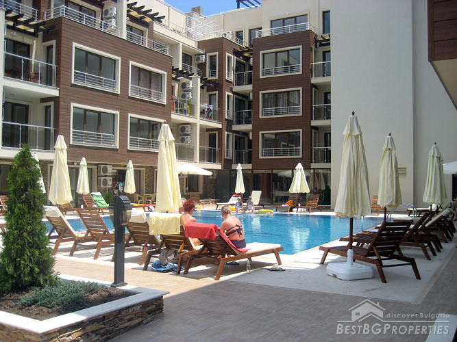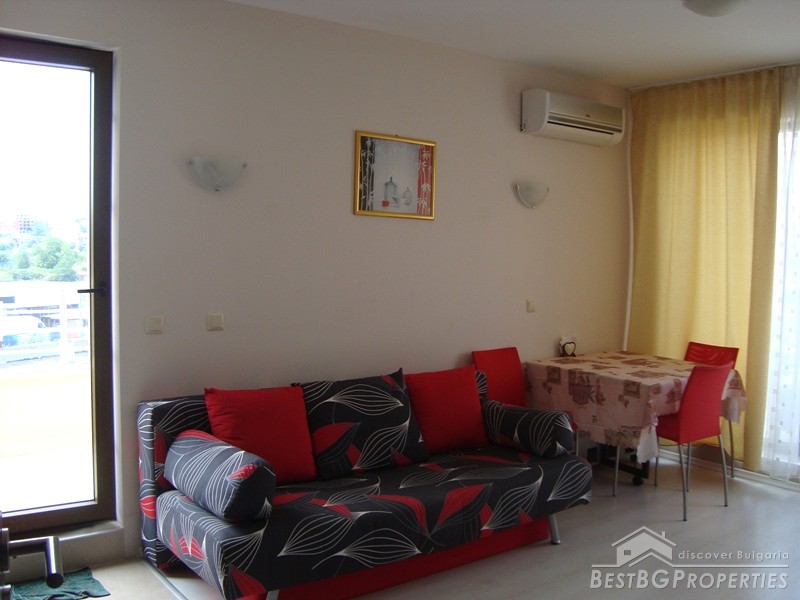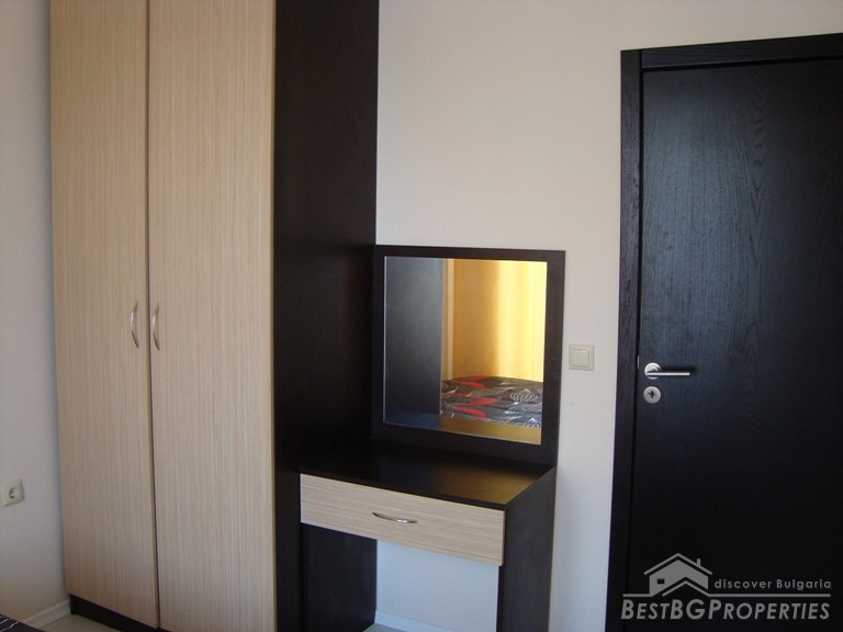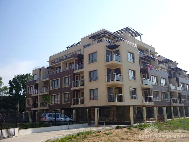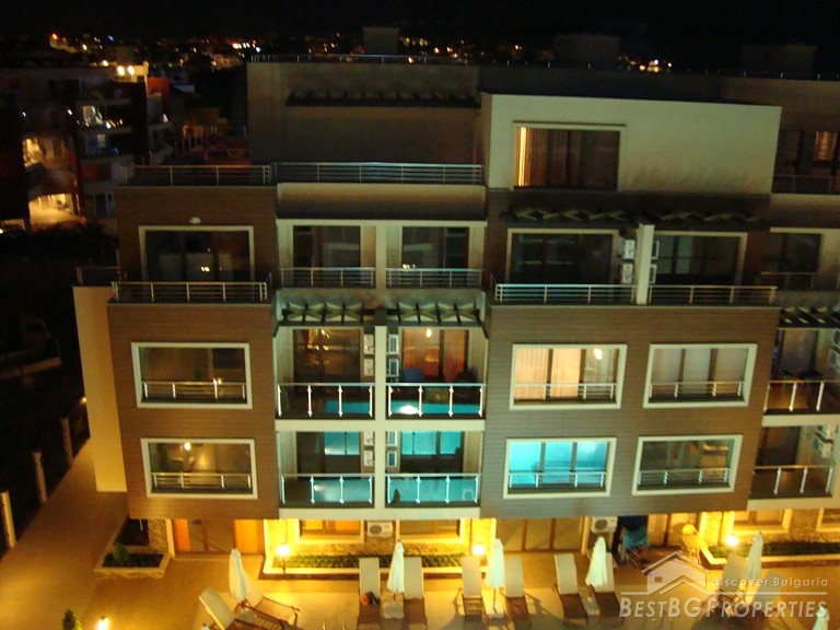 The apartment is located in a luxurious first line apartment complex with all amenities. It was built in 2009 year and is fully operational now. The beach is only 50 meters away. Nearby there is a parking lot. The complex has very convenient location in the heart of the new part of the town. It is fenced and there is a concierge.