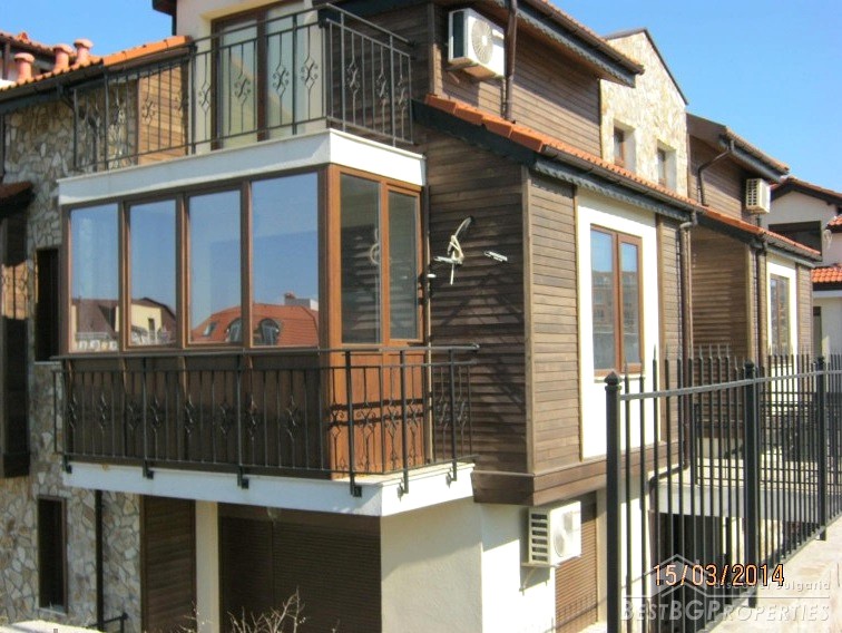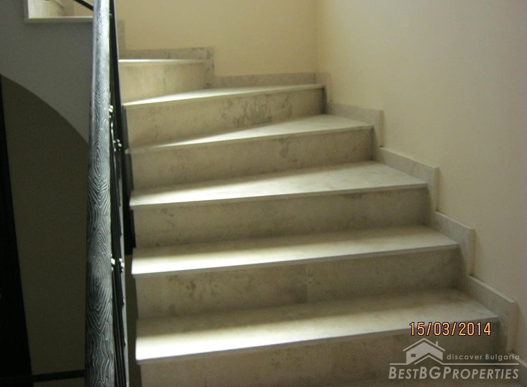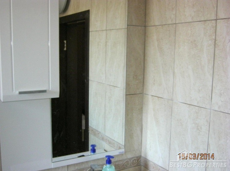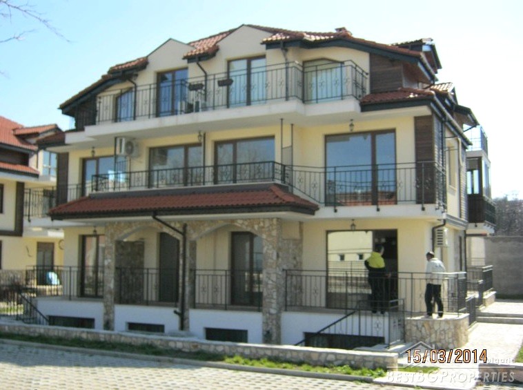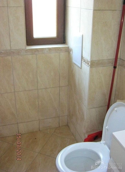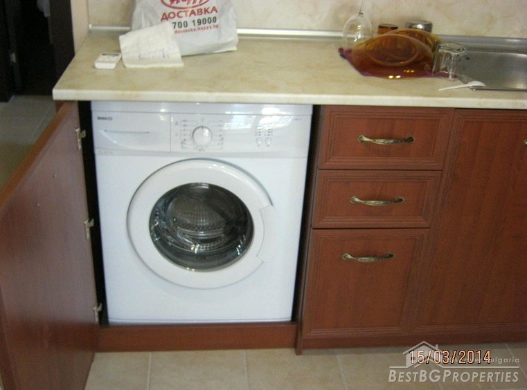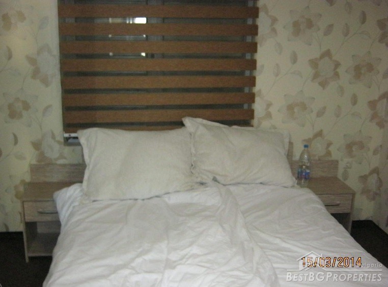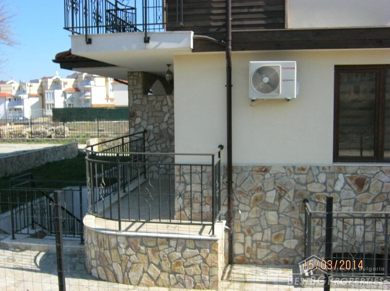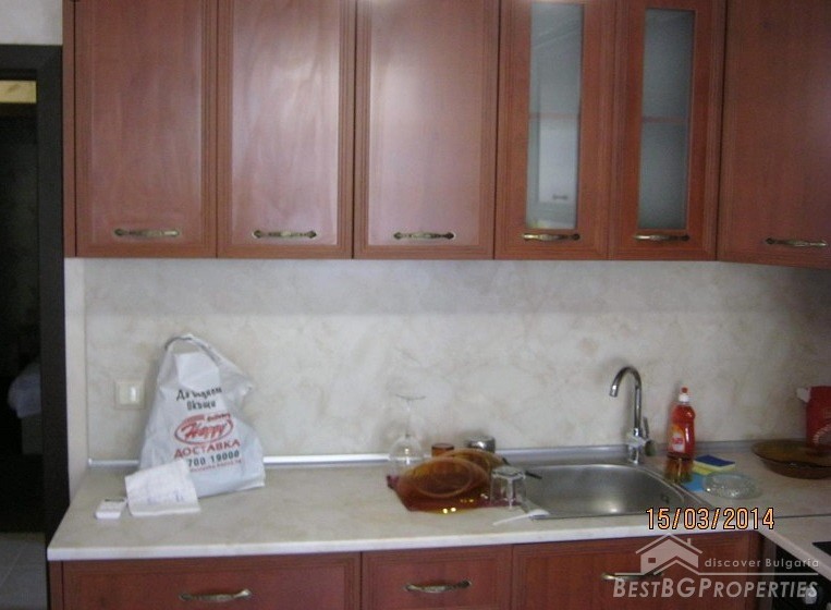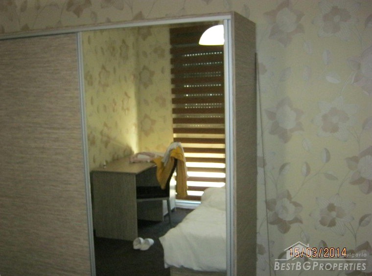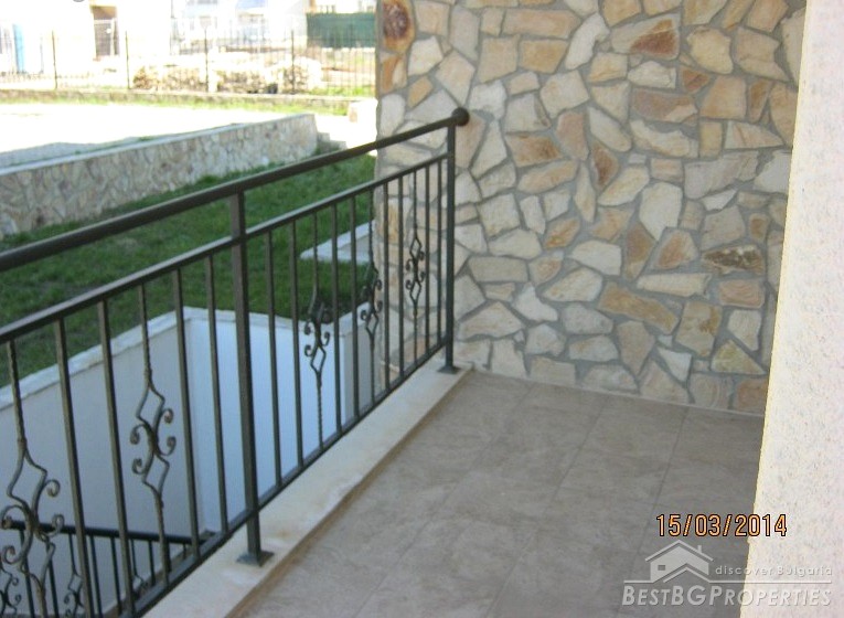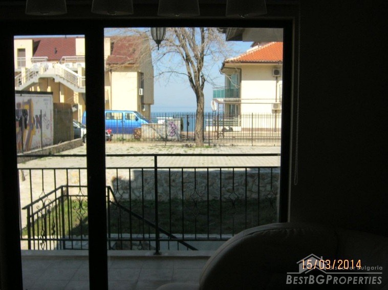 The apartment is located on the second line, only 50 meters from the beach Harmanite – as you can see from the photos. It is a one bedroom apartment with total living area of 65 sq m. The living space is distributed between a living room with kitchen box, one bedroom, bathroom with WC and a hallway. There is a balcony in every room. The property is on the first floor.