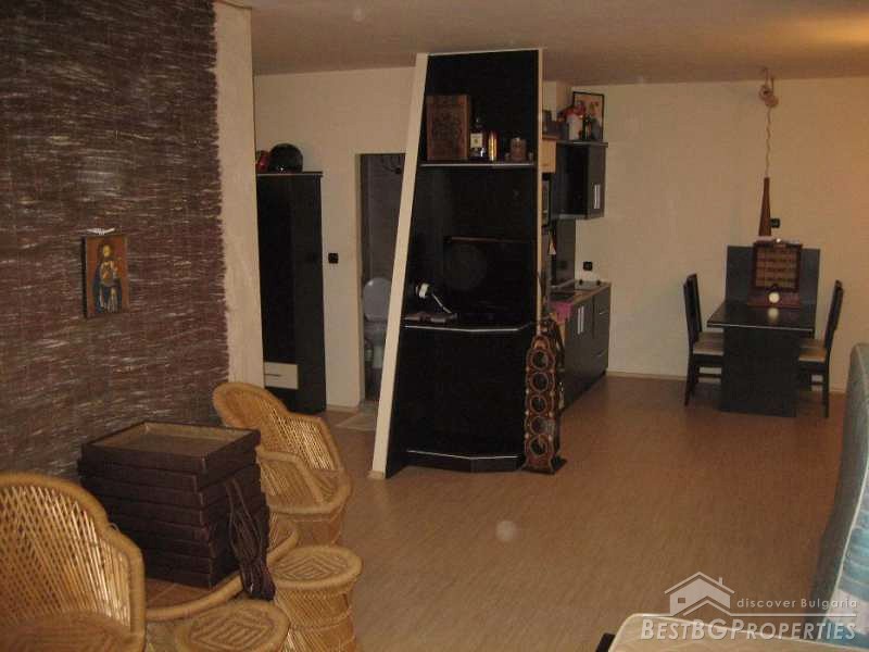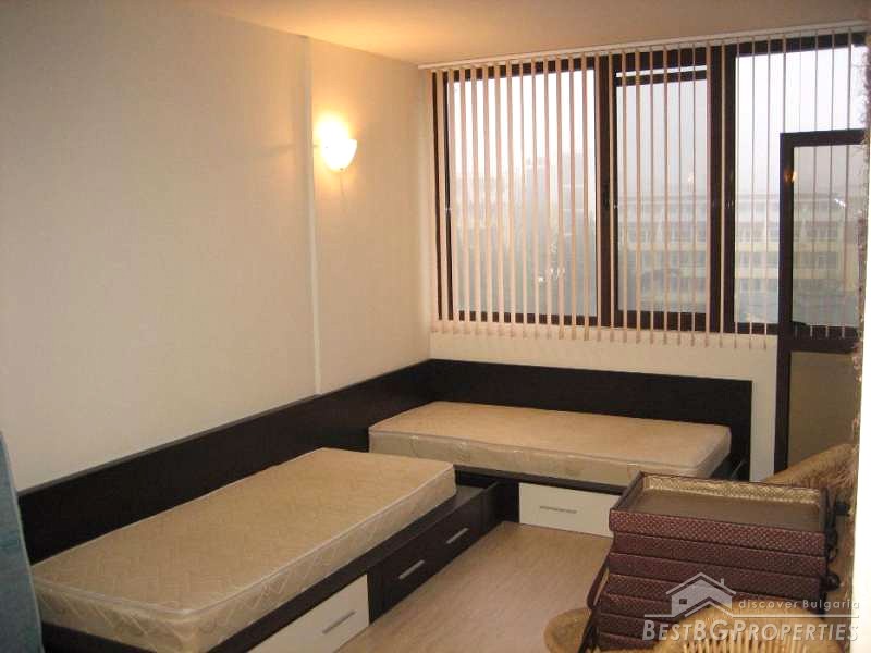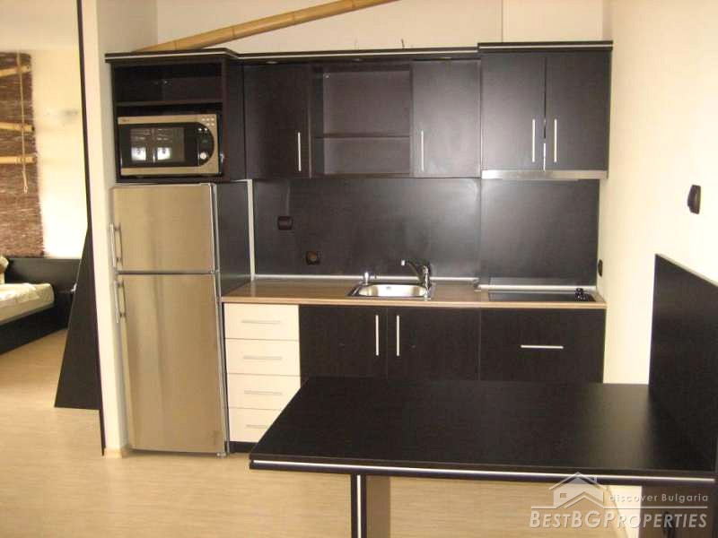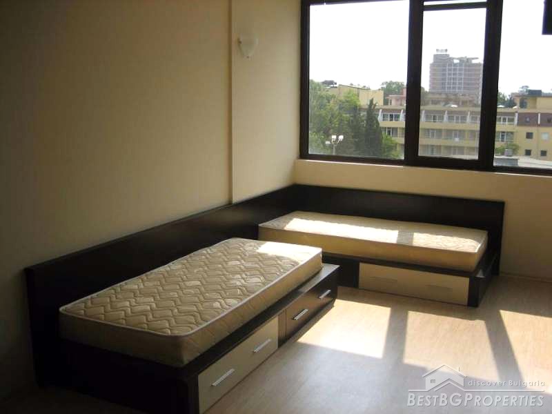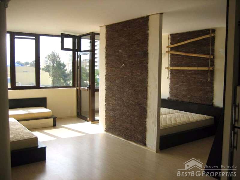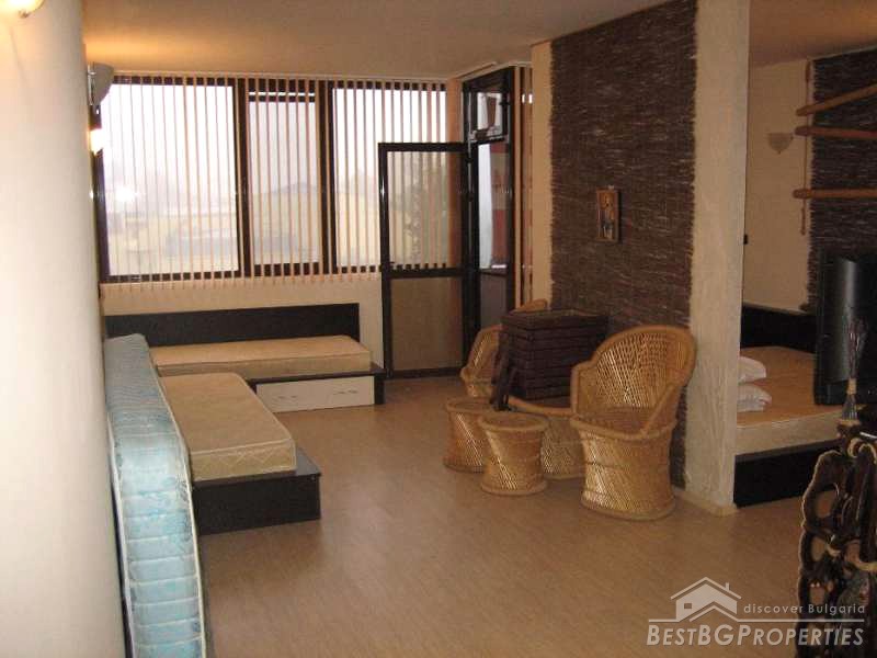 The studio is facing east. It comprises of a bedroom with large bed, two more single beds, terrace, bathroom, kitchen part and guest area. The apartment is fully and luxury furnished. The price also includes all electrical equipment - air conditioning DIKIN, TV 32", refrigerator, microwave, stove, security, etc.