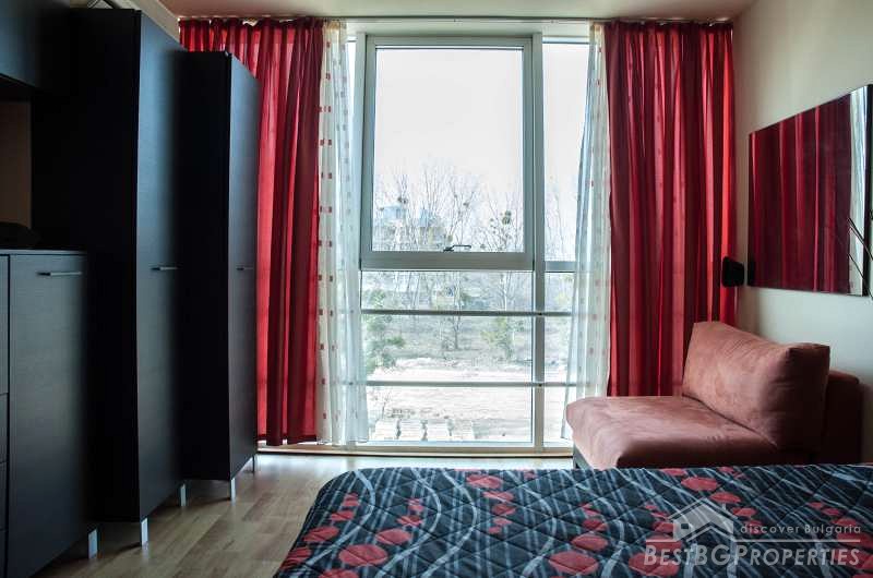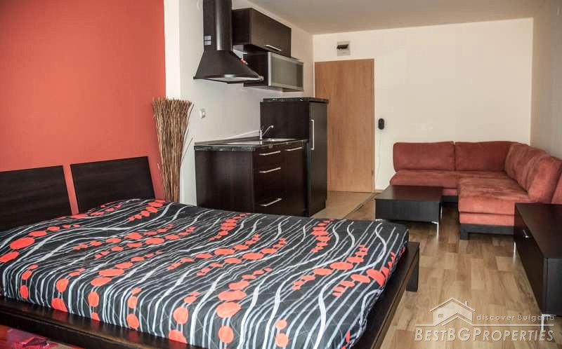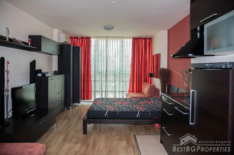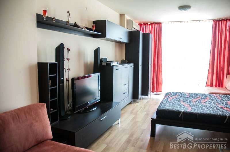 The offered apartment is located in a very busy area between the Cocoa Beach and Multiplace in Sunny Beach resort. It is a studio-type set in a residential complex with two pools, deck chairs and tents, parking, outdoor bar and a restaurant. The beach is within 300 m.