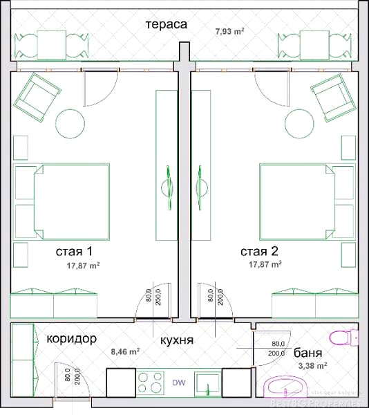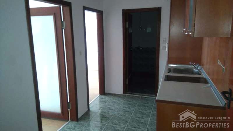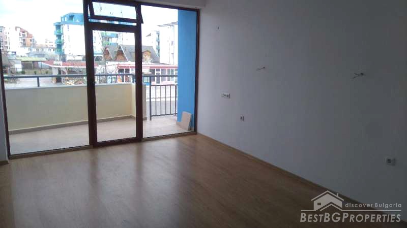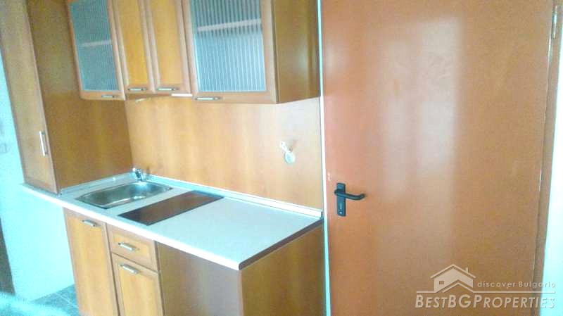 The stage of completion is turnkey: laminate and tiled floors, painted walls, PVC joinery. The apartment has equipped bathroom with water heater, fully equipped kitchen with brand new ceramic hob, sink, separate boiler and other. The property is heated with air-conditioners. It has cable TV and Internet.