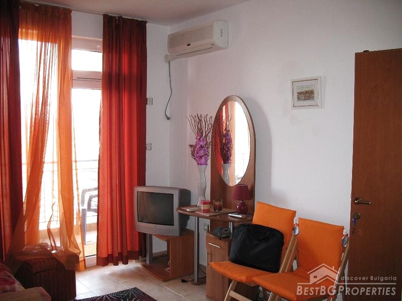The apartment is on the second floor. It consists of a living room with kitchen, one bedroom, a bathroom with toilet, corridor and a balcony. The apartment is facing west. It is very sunny and bright. It is offered for sale with all of the furniture, equipped with all necessary appliances. There is also an air conditioner and a boiler.