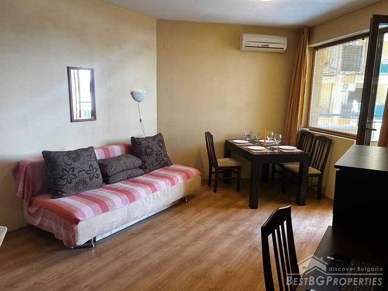 We offer you a unique opportunity to purchase a recently renovated spacious one-bedroom apartment in Bulgaria. The property is situated in a gated complex with an annual maintenance fee of only 84 euros. The apartment is located 700 meters from the beach (10-15 minutes walk), in the heart of the Sunny Beach resort.