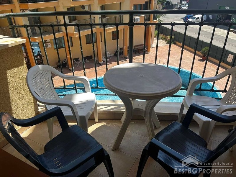 The apartment is on the 3rd floor. It overlooks the main pool, which also has a children's section. The complex is well maintained, fully secured and fenced, has parking, has video surveillance inside and outside the complex and the apartment itself, suitable for year-round living or renting out. There are 2 lifts. The largest gym in Sunny Beach and Aquapark are just a 6 minute walk away.