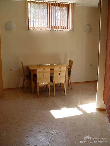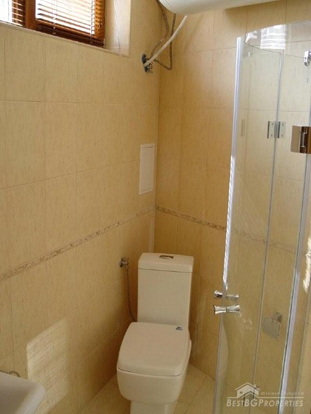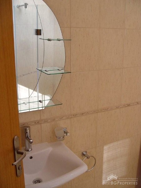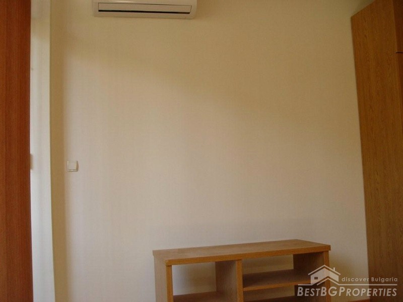 We are offering you this apartment located in a luxurious complex in the famous Bulgarian sea side resort Sunny Beach. The complex is situated just 400 m from the sea and the sandy beach. The apartment is fully finished with best quality materials and is ready to move in. It is situated on the ground floor of the building and has a total living area of 43,26 sq m. The apartment comprises a corridor, room with kitchen box, bathroom with WC and a balcony. The apartment is fully furnished. The kitchen is equipped with fridge, cooking range, absorber and dining table with 4 chairs. There is a table in the living area, stand for a TV set, double bed sofa, wardrobe, air conditioner (cooling and heating), cable TV and internet are provided. The bathroom is fully equipped with shower cabin, sanitary equipment, sink, water heater, mirror and cup boards. The apartment is finished with inner and outer isolation, terracotta and faience flooring, latex painted walls and ceilings. Electricity and water are provided. All plugs switches and lighting objects are installed. The complex offers well maintained garden with palm trees, open swimming pool with kid's sections, sauna, bar next to the pool, café, reception, 24/7 security, video surveillance, parking in front of the complex. Don't miss this wonderful cheap opportunity.