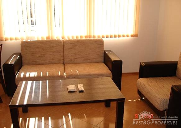The apartment is for sale completely furnished: living room - couch, sofa, cafe table, dining table with four chairs, TV stand with TV, air conditioner, curtains. The kitchen is fully furnished with fitted double ceramic hot plate, fitted oven, absorber, fitted washing machine, fridge, toaster, dishes and other. The bedroom is equipped with double bed with night stands, large wardrobe, mirror, mantras and blankets.