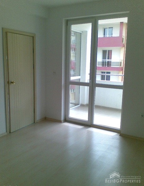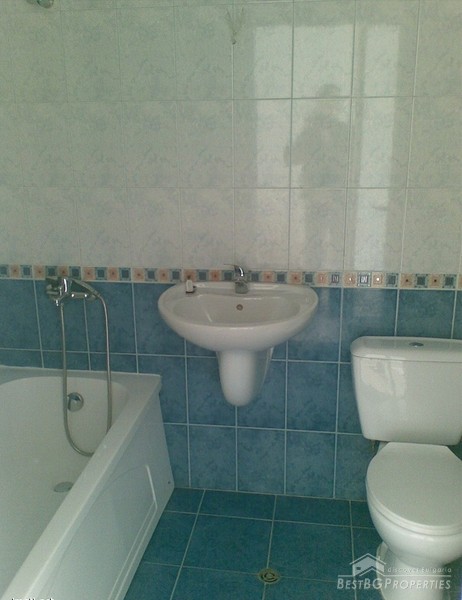 The apartment which is for sale is one-bedroom type and comprises total living area of 77 sq m. The clean living area without the common parts is 68 sq m. The living area is distributed between a living room with kitchen box, one bedroom, one bathroom with WC and another WC. The apartment is for sale fully finished with best quality materials according to the highest requirements of construction. It is finished "on key" stage - latex painted walls and ceilings, laminate and terracotta floorings. There is water and electricity provided. The bathroom and the WC are fully equipped with everything necessary. The first bathroom includes a bathtub. There is also a kitchen furniture included.