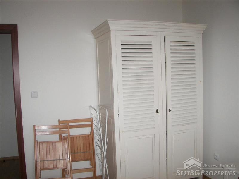 The studio type apartment which is for sale, comprises total living area of 31 sq m, and is set on the fourth floor of the five floored building. The apartment is for sale furnished with designer's furniture according to the old style. The furniture includes bed, night stands, mirror, TV set and everything else. Besides that there is a high speed internet connection, telephone line, refrigerator and air conditioner. The bathroom is fully equipped with sanitary equipment, and is luxury finished.