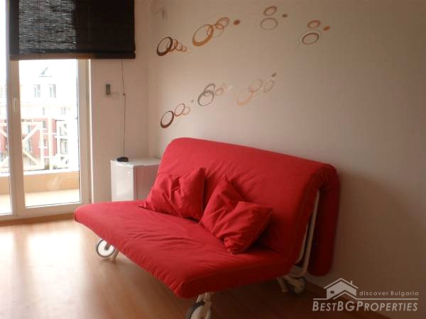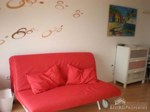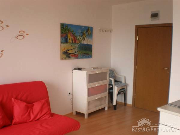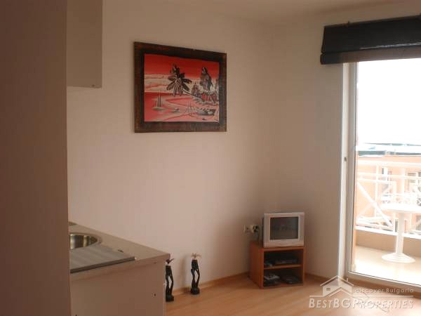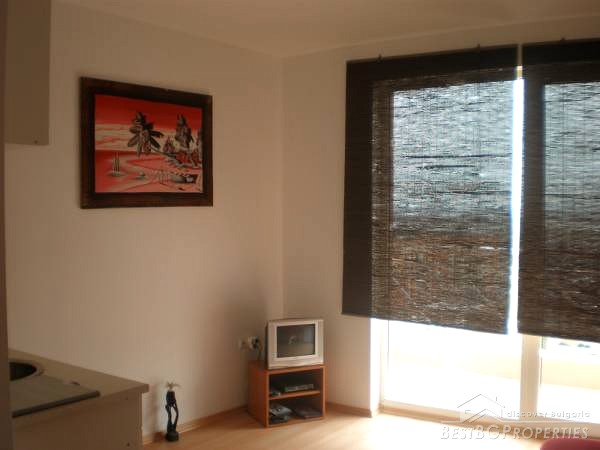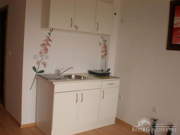 The studio apartments that we offer for sale, is located on the 5th floor of the building and is overlooking the swimming pool and also with a nice view to the west to the Stara Planina Mountain. The apartment is for sale fully furnished and ready to live in. It comprises total living area of 32.33 sq m, which is distributed between a spacious living room with kitchen box, a corridor, a bathroom with WC and a balcony with nice view.