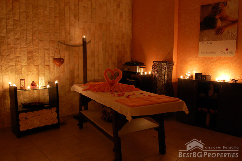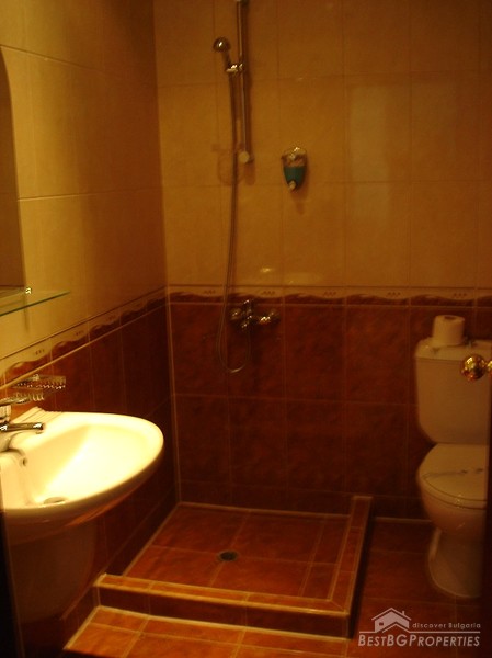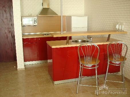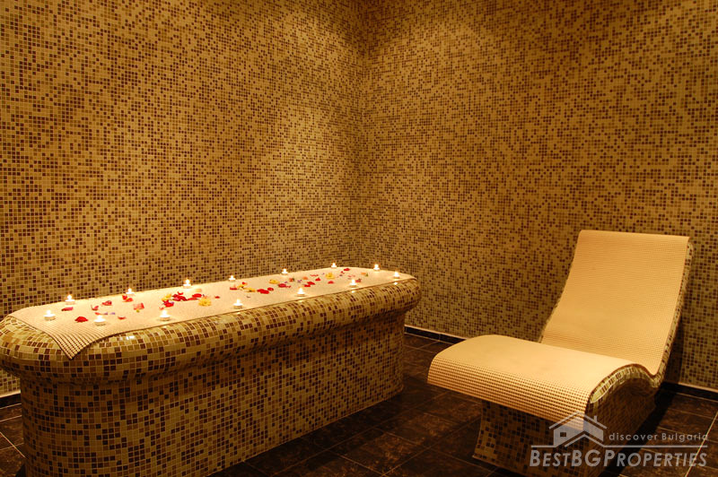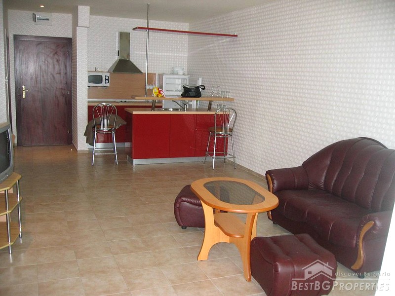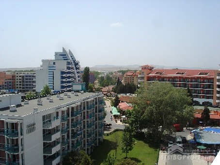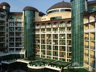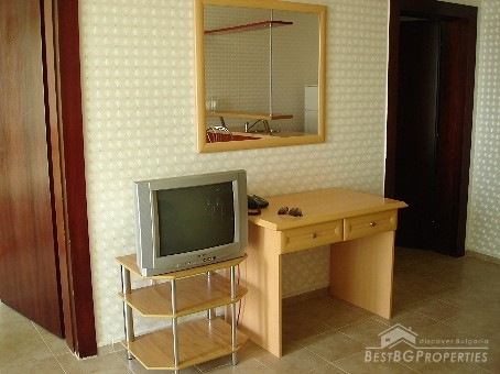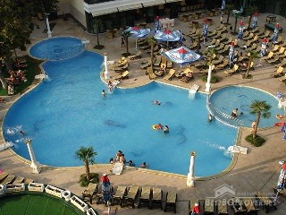 The apartment is situated in a luxury apartment complex built in the very heart of Sunny Beach, just 50 meters from the sea, and the wide sandy beach. The complex was built with high quality materials up to the five-star standard. There is a reception, two restaurants, lobby bar, pool bar, sky bar, outdoor pool, indoor pool, gym, beautiful spa center. The common parts of the complex are incomparably luxuriously finished - with natural marble floorings, impressive chandeliers, crystal, railings, gold-plated. The complex is one of the most prestigious holiday destinations in Sunny Beach and its proximity to the beach, all the amusement resort offers turns it into a comfortable place for family holidays.