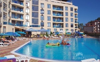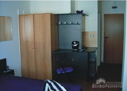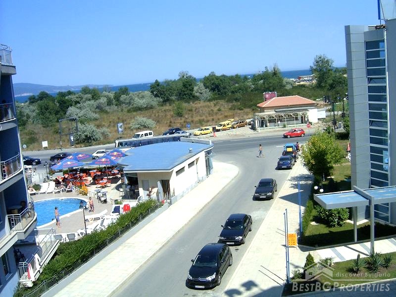 This is a cozy studio type apartment for sale with splendid panoramic view over the sea. It is situated in a new luxury vacation complex it the most famous Bulgarian seaside resort - Sunny Beach. The complex is in close vicinity to the beach, and the luxury disco clubs such as Cacao Beach and The Home . It is next to the bus stop Sunny Beach - Nessebar and a 24/7 grocery store.