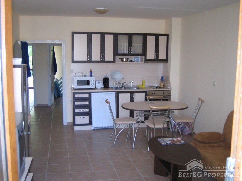 This is a spacious two-bedroom apartment for sale located in Sunny Beach - the largest sea resort in Bulgaria. The apartment is part of a luxurious new apart hotel located 400 meters from the sandy beach of Sunny Beach resort and 3 min from the centre of the resort (hotel Kuban).