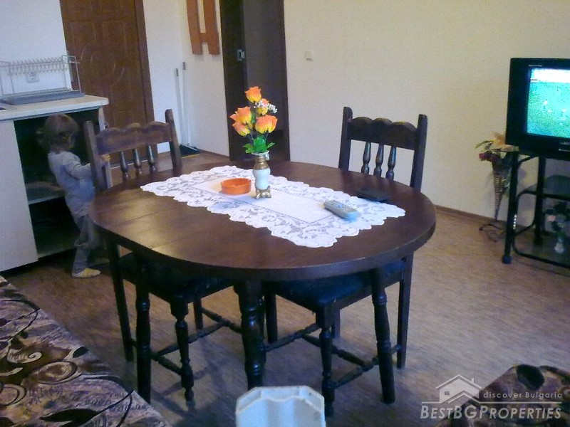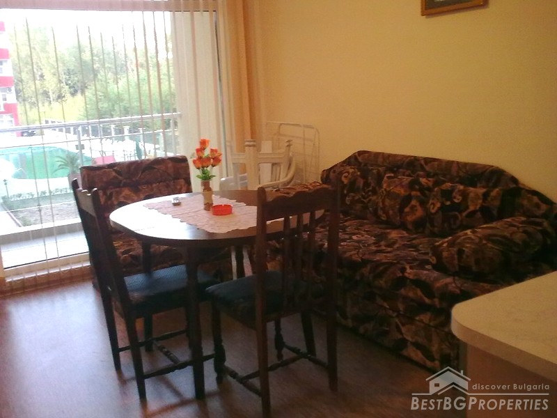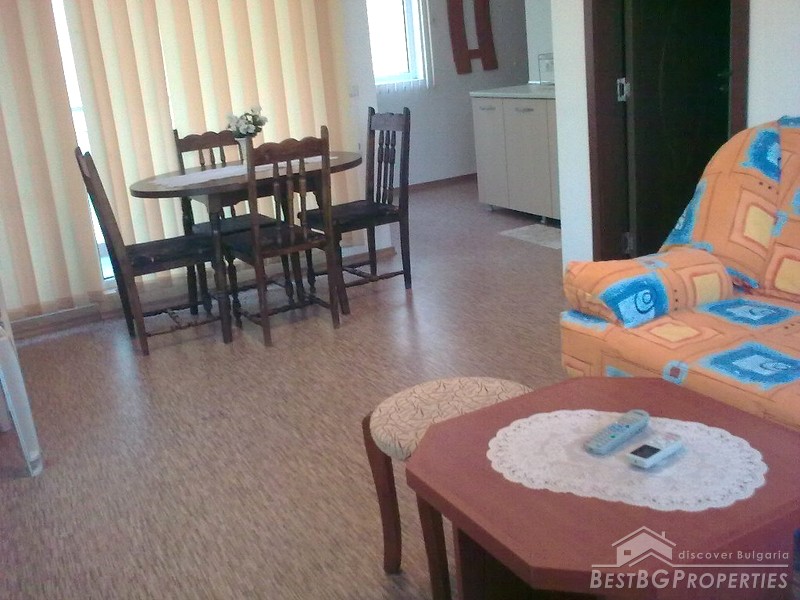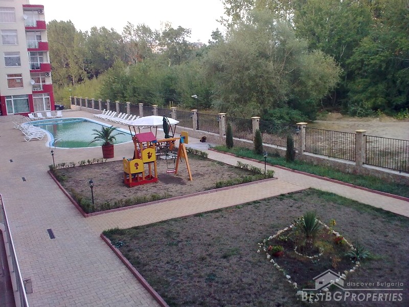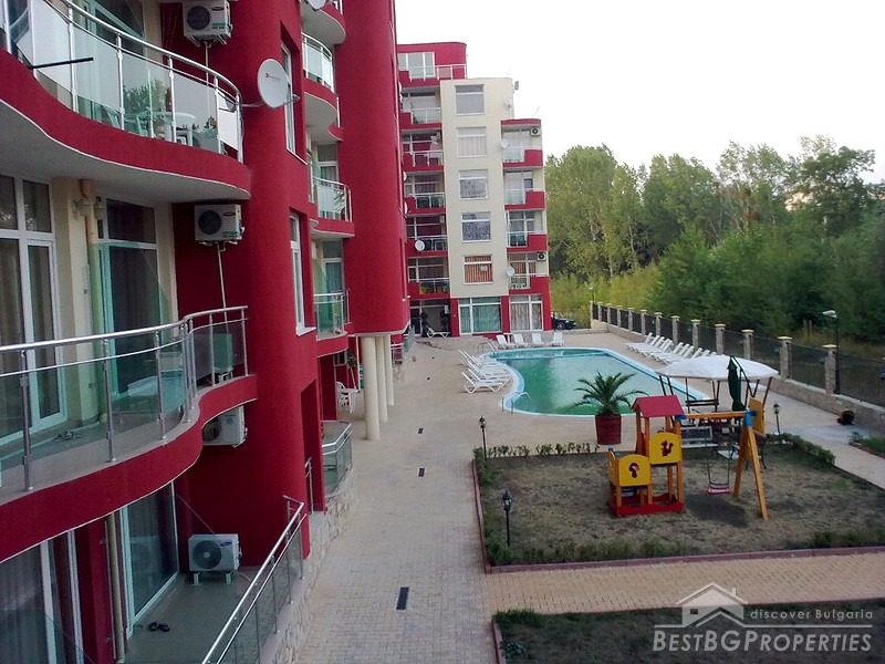The apartment is part of a multi-family residential building, situated in the most famous Bulgarian sea resort Sunny Beach. The complex is situated 500 meters from the beach and 20 minutes from Bourgas International Airport. In the complex there is an open air swimming pool, café, elevator, children's playground, and green areas.