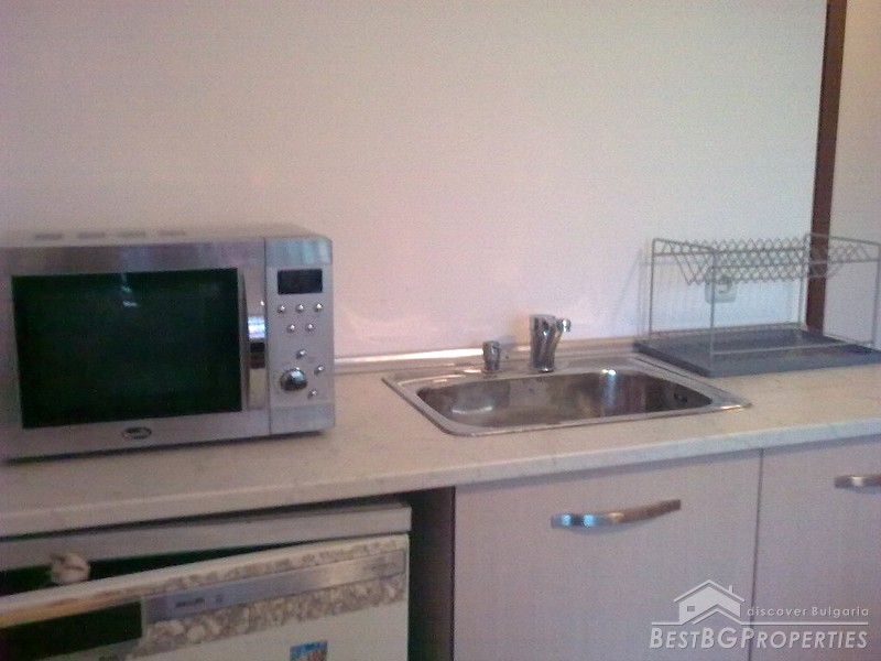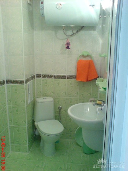 The apartment is a one bedroom type and comprises total living area of 64 sq m, situated on the second residential floor. It consists of a living room with kitchen box, one bedroom, bathroom with WC, and a large balcony. The apartment comes fully finished and equipped. Bathroom and WC - equipped, faience, terracotta. Floorings - terracotta, granite-grease, kitchen-cupboard, sink, tiling above the sink, cupboard above the sink, aspirator, air-conditioner, PVC woodwork, walls and ceilings- ecological paints, outer insulation of the building- fibran, silicate decorative paints.