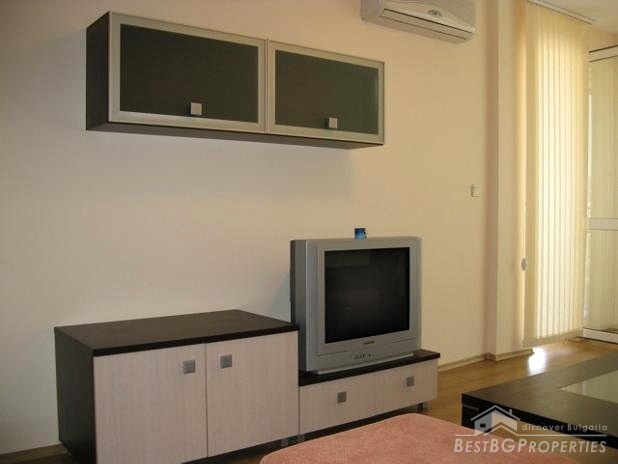 The apartment is one-bedroom type and is for sale luxuriously furnished and includes: kitchen - fully fitted and with all kitchen appliances, fridge, plot, microwave, small boiler, washing machine, dishes, etc. Living room - soft furniture, table, TV, stands. Bedroom - double bed, mattress, dressing table, wardrobe, towels, sheets and more. The bathroom is luxury equipped - sanitary ware, shower cabin. The apartment hasn't been rent out, and was used only 10-15 days in a year, so the equipment and furniture is almost as new!