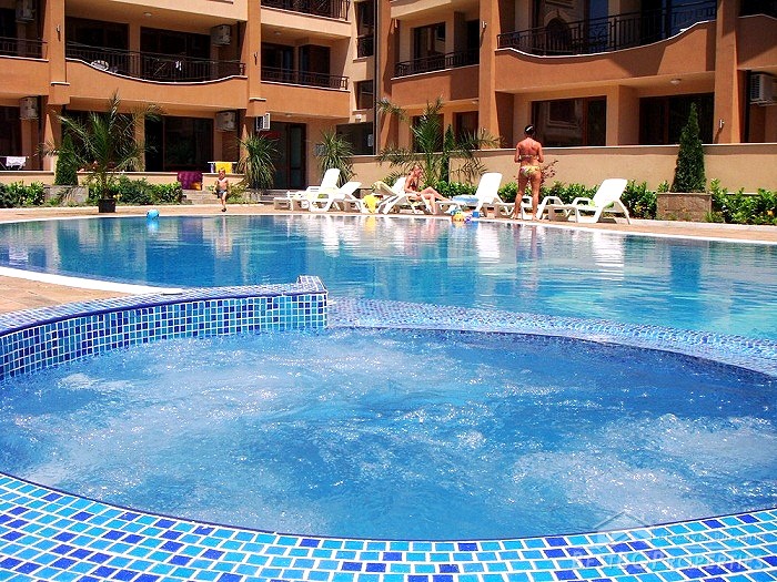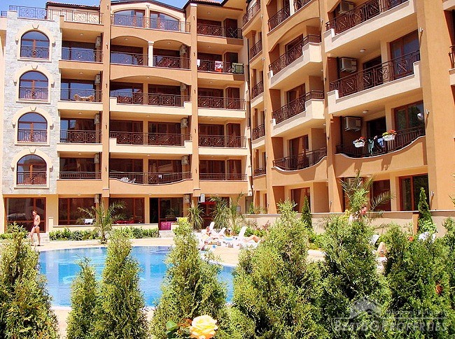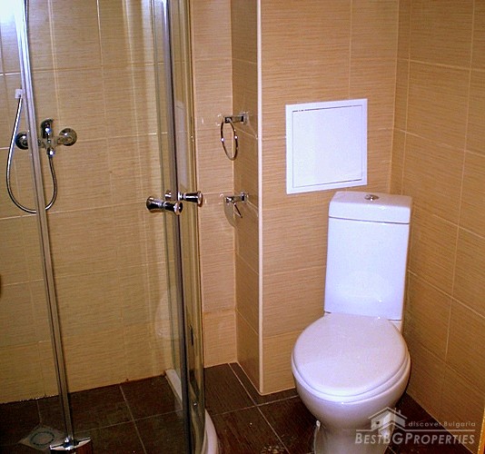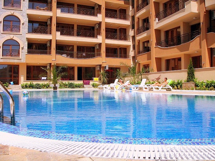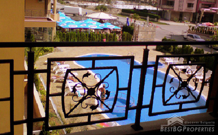 The apartment is part of a luxurious residential complex located in the western part of Sunny Beach, at a distance of 400 m from the beach and the promenade. The complex offers all amenities including an open air swimming pool, sauna, restaurant, autonomous air conditioning, hydraulic lift, apartments safeguard protection system.