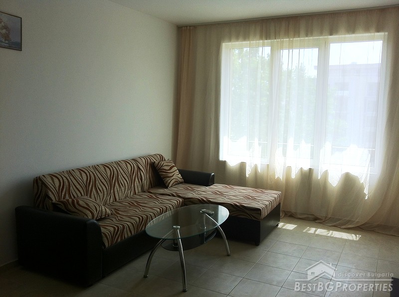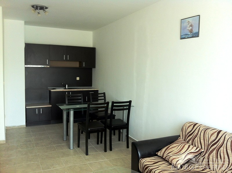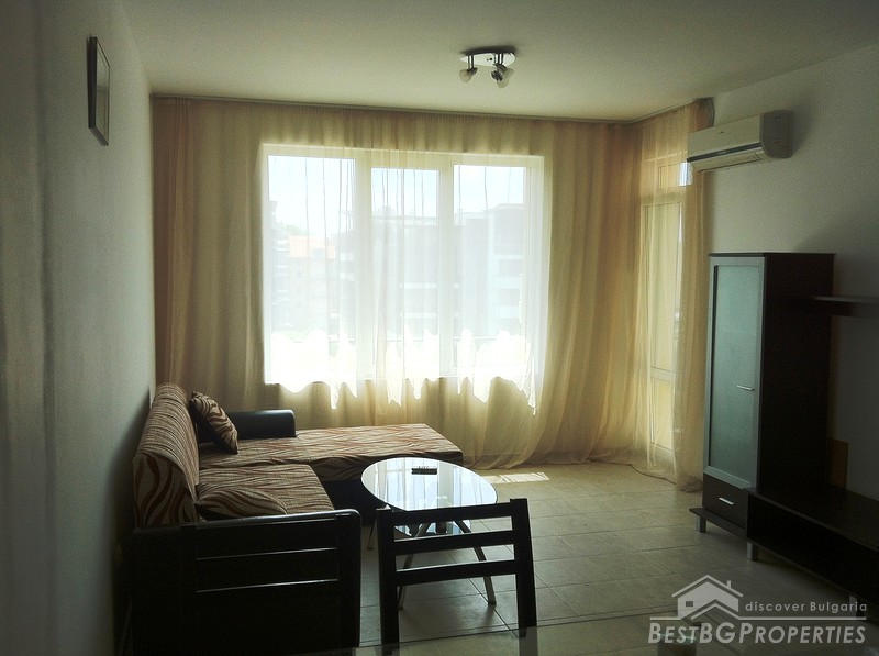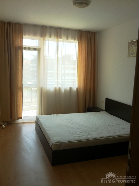 This is a luxury apartment for sale located in a large residential complex in the western part of the elite Bulgarian sea resort Sunny Beach, about 400 meters from the beach. The type of construction is brick built and it was finished in year 2010. It is completely ready and with act 16 permission for operation.