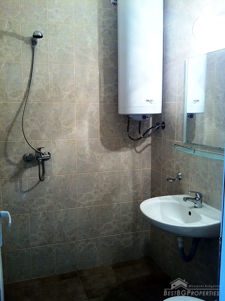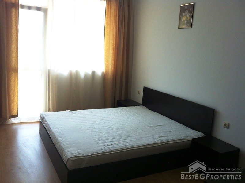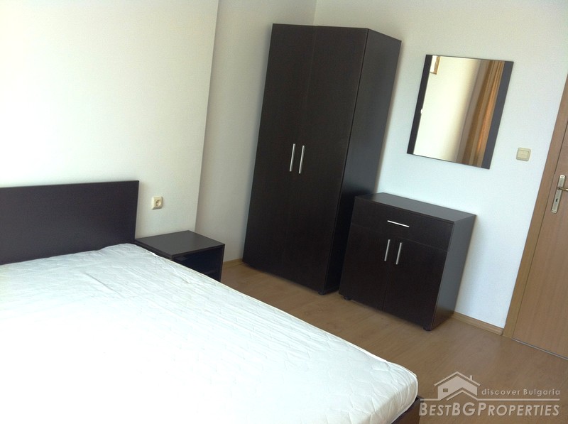 The apartment is situated on the fourth floor out of five in total. The total living area is 56.67 sq m (built area + common parts). The clean living area is 50.69 sq m. The apartment consists of a living room with kitchenette, one bedroom, bathroom with shower and a balcony. The flooring is laminated parquet in the bedroom and ceramic tile in the living room. The walls and ceilings are with latex paint. The bathroom is tiled with ceramic tiles and is fully equipped with all necessary. The hallway is on terracotta, walls and ceiling - latex paint. The balcony has granite floor. There are all communications - Internet, telephone and cable TV. The apartment is for sale fully furnished.