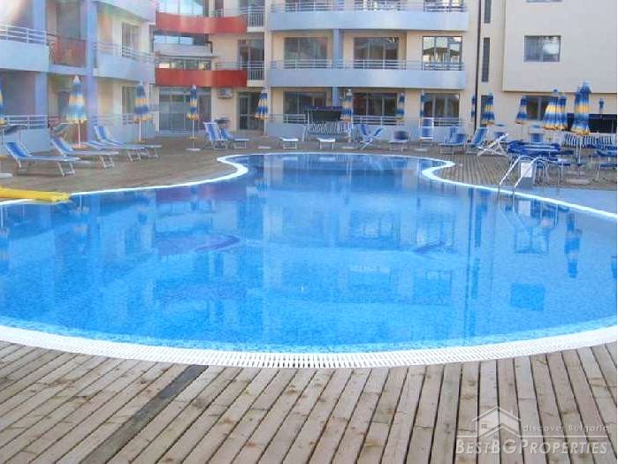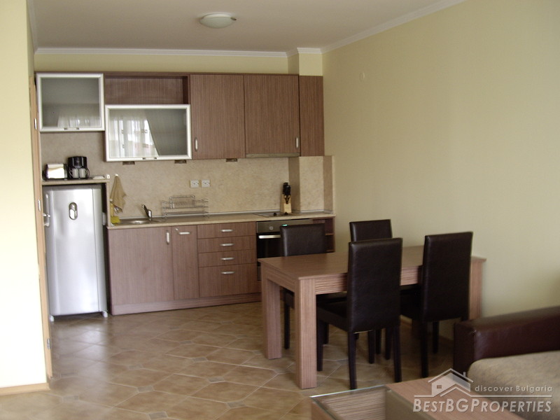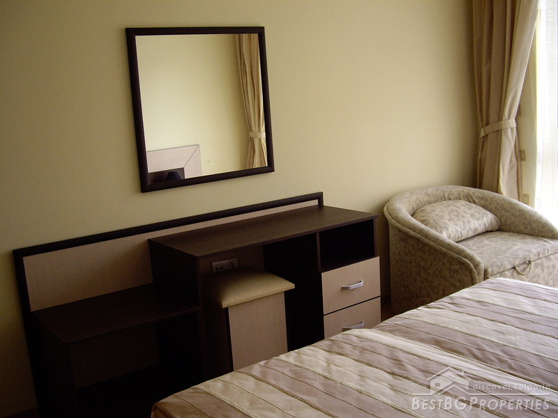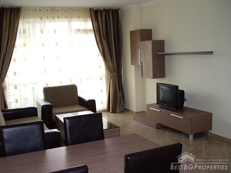 We are offering you luxury one-bedroom apartment for sale located in Sunny Beach. It has total living area of 61 sq m (53.73 sq m clean area + 7.27 common shares). The property is situated on the first floor of a six-story luxury residential complex finished in 2007 year.