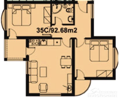 Offered for sale is an apartment, situated in a large residential complex in Sunny Beach sea resort. The apartment is situated on the third floor and includes a living room with kitchenette, two bedrooms, bathroom and two balconies.