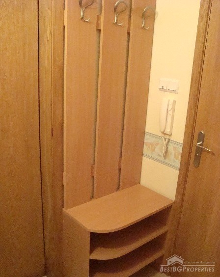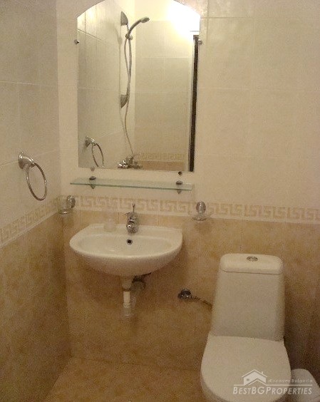 The apartment offers total living area of 76 sq m, situated on the first residential floor of a closed type residential complex. The apartment is split on two – studio and a double bedroom with two separate entrances, two hallways, and two sanitary premises. The property is fully furnished and equipped with air conditioners.