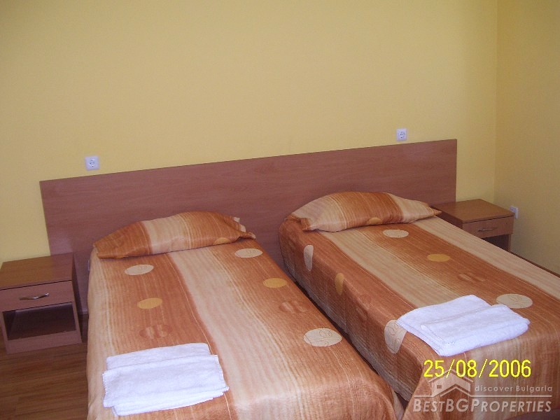 The complex is located just 150 – 200 meters from the beach. It has its own swimming pool and a snack-bar. The property is 100 m away form the Aqua Park and 300 m from the central beach. The resort center and the famous hotel Kuban are at 100 meters, also the disco club Mania and the well known restaurants Djanny and Condor.