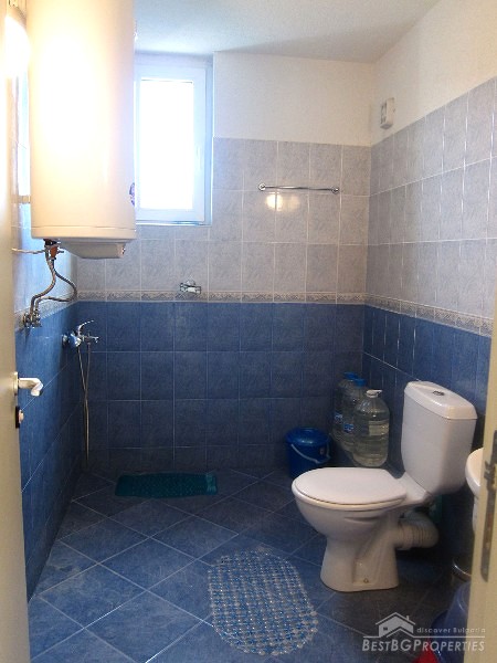 The apartment is on the 4th floor of the 5 storey complex building. It has total living area of 80 sq m and consists of a spacious living room with kitchen, two bedrooms, bathroom with WC and a balcony with awesome view. The apartment is sold fully furnished and equipped with kitchen appliances, air conditioning, soft furniture, etc. There are all communications – water, electricity and cable TV.