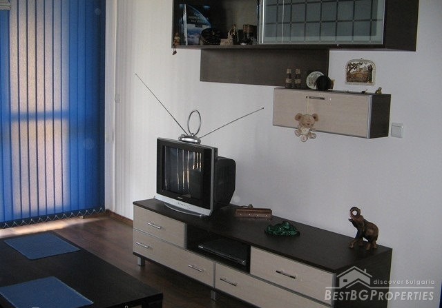 The apartment has total living area of 72 sq m including the common parts. The clean living space is 65 sq m. It is on the second floor out of 5 in the complex and it is in great condition. The living area is distributed between one bedroom, living room with kitchen box, bathroom with WC and a balcony.
