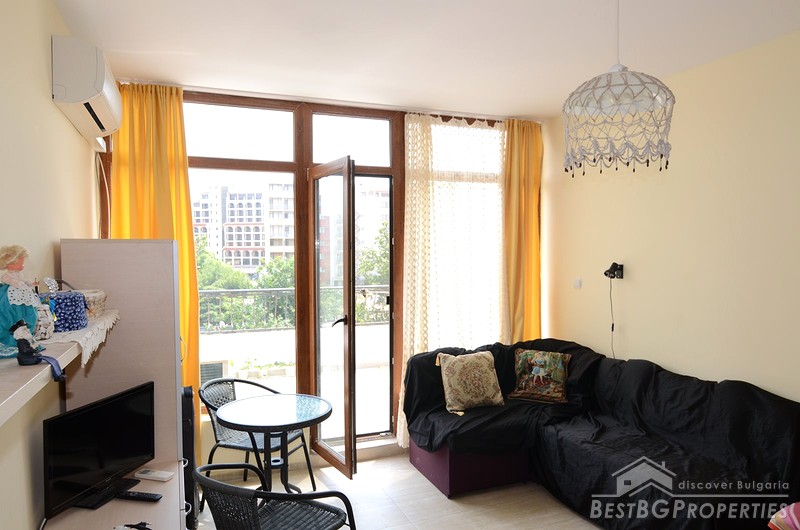 We are offering to your attention the following property for sale! This is a cozy, brand new, fully furnished and finished one bedroom apartment for sale located in the center of Sunny Beach sea resort.