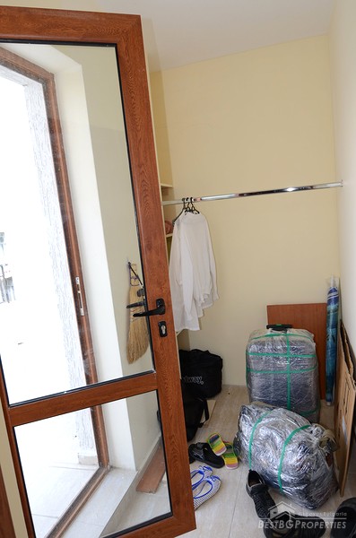 The apartment has total living area of 74.59 sq m including the common parts and clean living space of 62.50 sq m. It is on the fourth floor out of four. There is no elevator. The finishing is turnkey and includes PVC windows and MDF interior doors.
