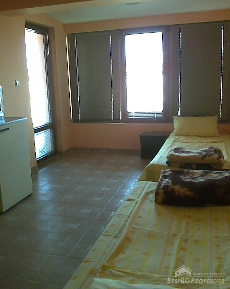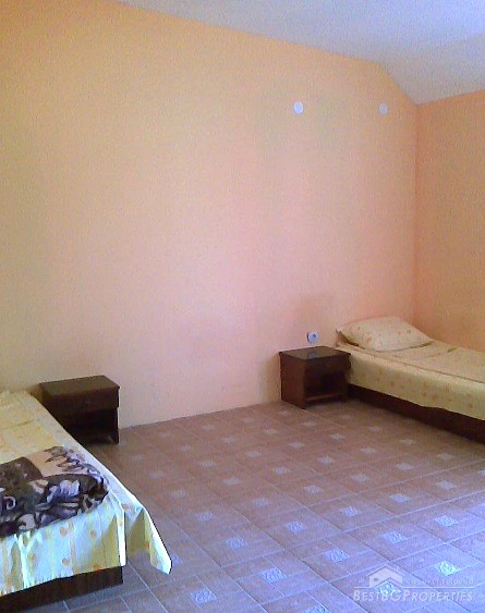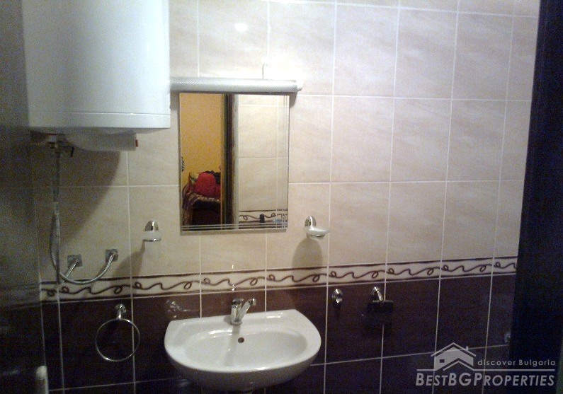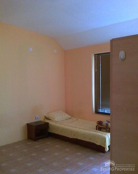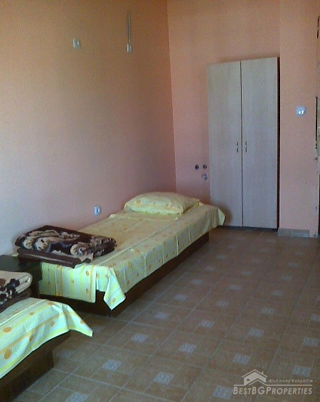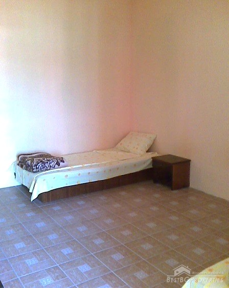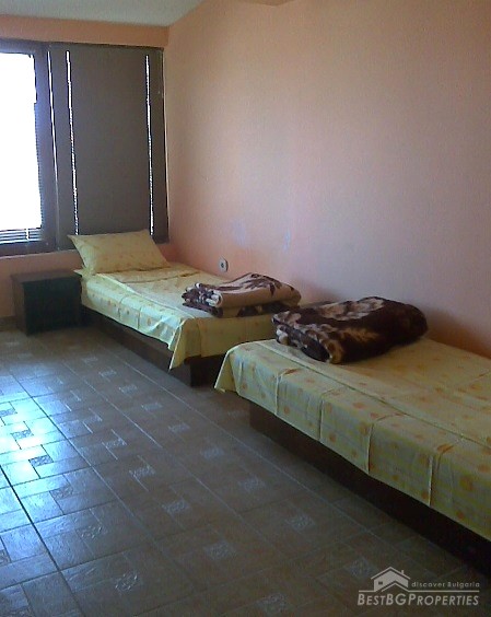 The building is residential type with permanent inhabitants all year around. Most of the apartments are for rent during the summer which makes a very good investment. The apartment has water and electricity. It comprises of two rooms and a bathroom with WC. The stage of completion is turnkey –terracotta floors, latex paint and faience bathroom. The apartment is furnished only with beds due to the fact it was used for rent. There is no kitchen installed. The total living area is 52 sq m.