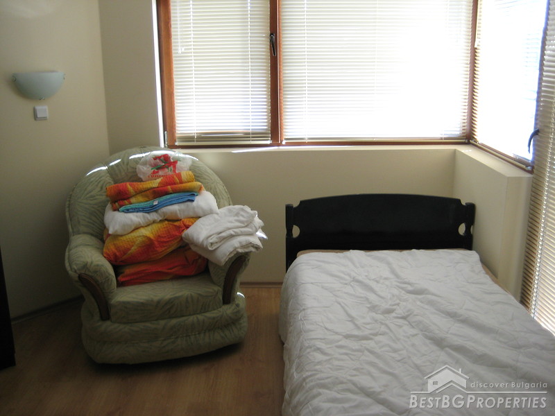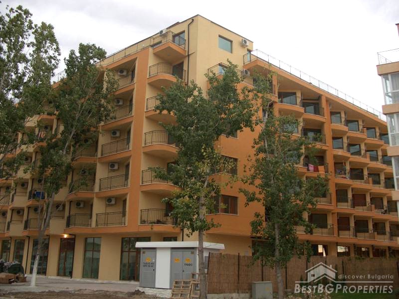 The apartment is one bedroom type and has total living area of 65 sq m. It is situated in the center of the resort – only 5 mins from the shore in a closed type residential complex with all amenities. The apartment is on the fifth floor out of seven in the complex. The complex includes the following amenities – open air swimming pool (adults and kid’s), security, working infrastructure. The distance to the sea is 500 meters. The building has Act 16 permission for usage. The apartment is fully furnished and equipped. It has an air conditioner, all necessary documents. The property is ready to move in right away.