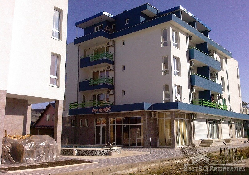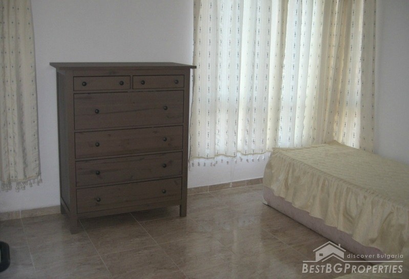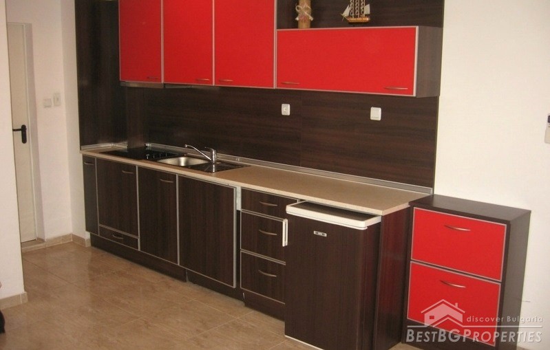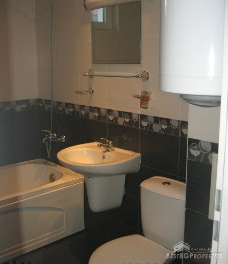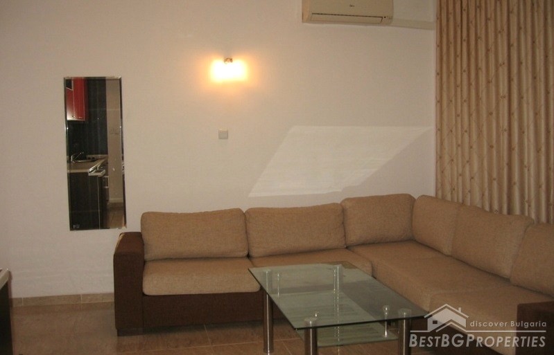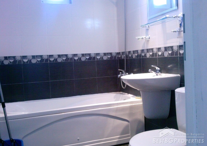 The apartment has total living area of 55 sq m. It consists of a living room with kitchen box, equipped with all necessary electrical appliances, air conditioner, electric boiler, ceramic plot, fridge, washing machine and other. There is also one bedroom, corridor and a bathroom with WC.