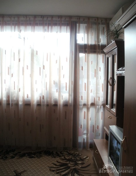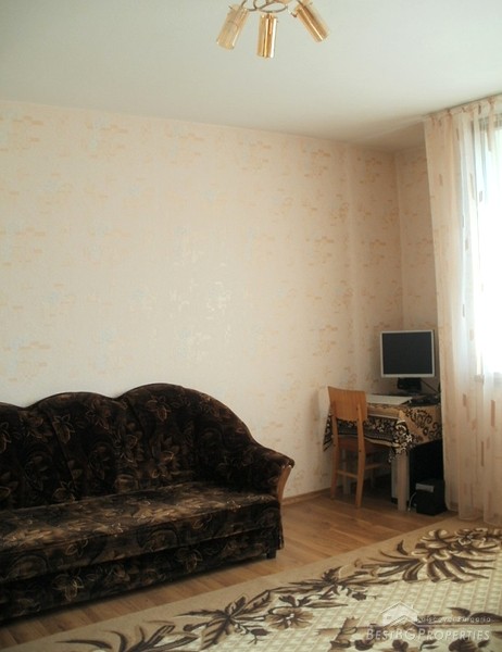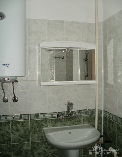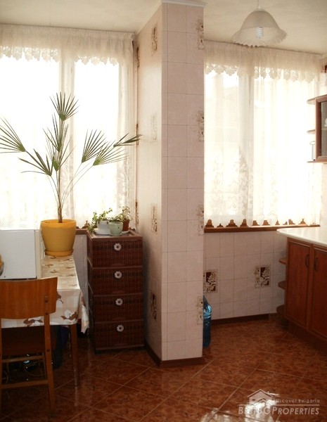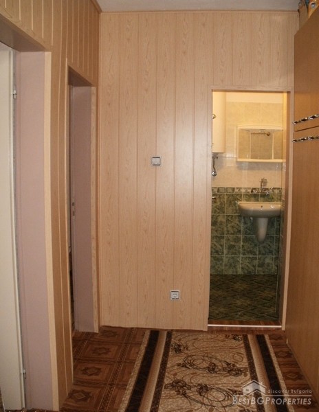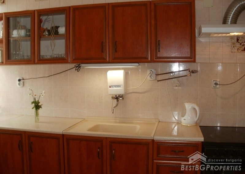 The apartment is after a complete renovation, located in the center of the town, near the bus station, train station, nursery, kindergarten, school, supermarket, pharmacy, church, a market and other. It comprises with total living area of 79 sq m and consists of 2 bedrooms, living room, kitchen, bathroom, a separate toilet and 2 balconies. The price also includes an attic premise - 22 sq m and a basement - 11 sq m.