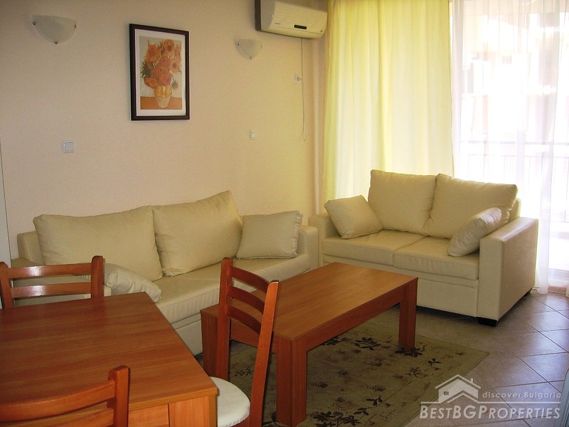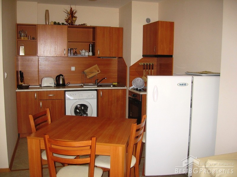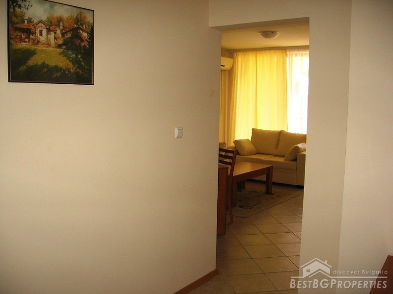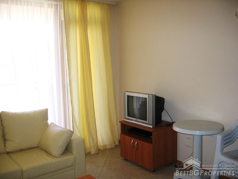 The building is reinforced concrete construction, monolith with a bricks. It is fully finished and has act 16 permission for use. The outer walls of the building have thermal and sound isolation. The complex also has parking space, 2 open air swimming pools, children playground, restaurant, shops, doctor, and controlled access.