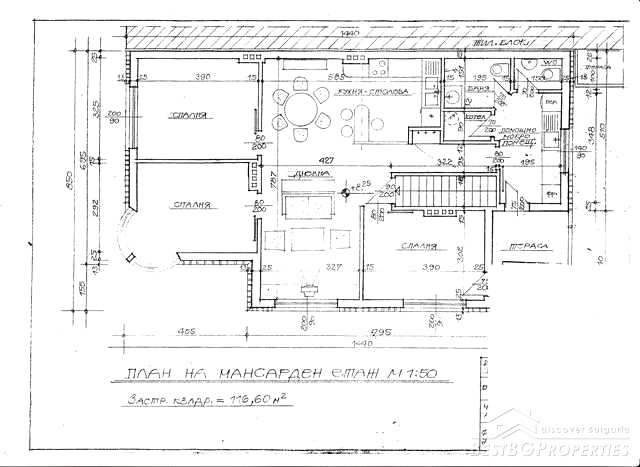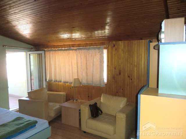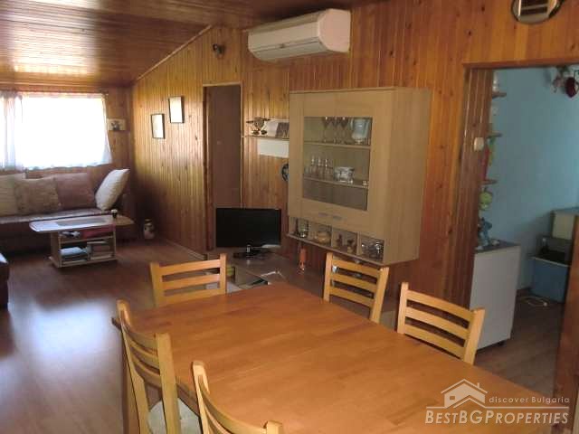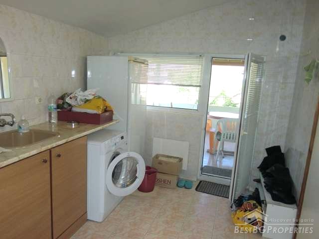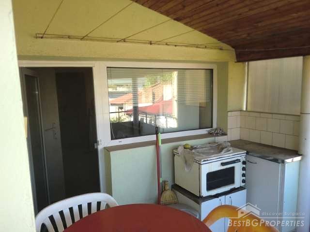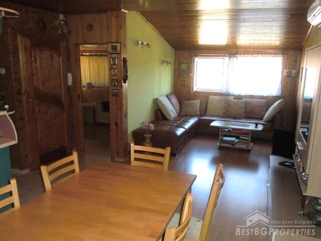 The property comprises with total living area of 117 sq m. It consists of three bedrooms, living room with kitchen, large laundry room, 2 toilets, bathroom and a terrace with lovely view. The apartment is furnished and is in very good condition. The finishing includes tiled and laminate floors, there is air conditioning, isolation (wool), possibility for solar panels on the roof, etc.