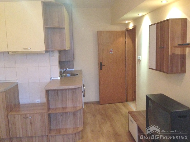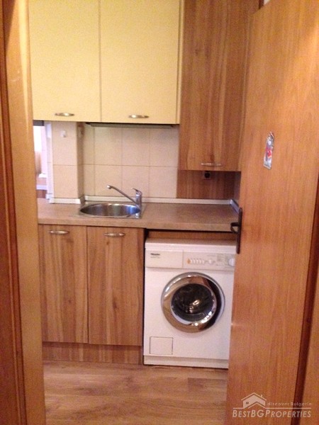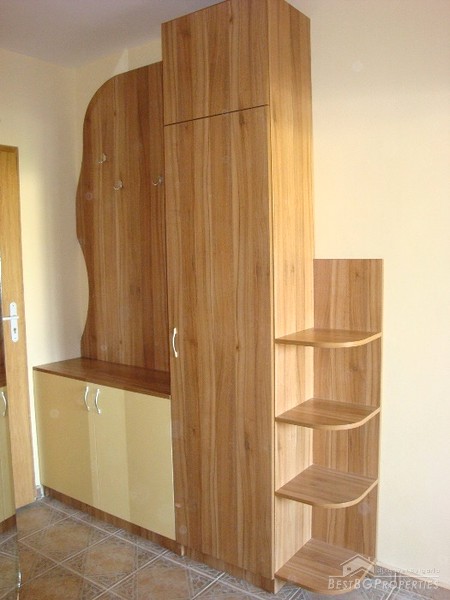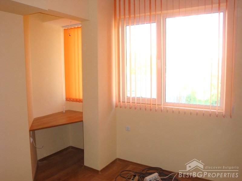 The finishing is “turnkey” which means the apartment is completely ready for living. It has PVC window joineries, outside isolation, laminate floors and custom fitted kitchen. The balcony is glazed.