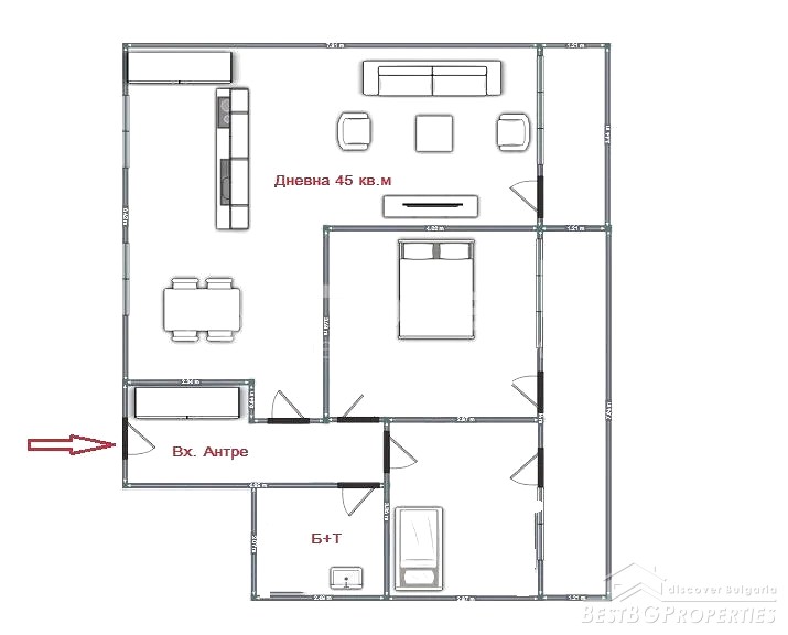 The property is situated next to Levski Bazaar, CBA Supermarket, Mravkata Butcher Shop, 500 m from Nayden Gerov Primary School, a kindergarten and many various stores. The building is 1500 m from the sea.