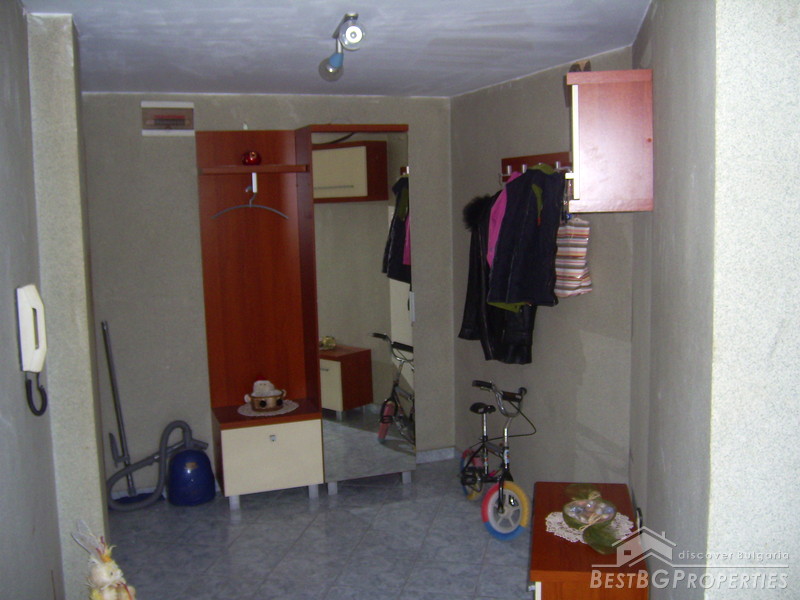 The building is new kind of construction, build of brick. It is finished with inner and outer isolation. There is mineral plastering and PVC window joinery. The building has its own parking area and an elevator. The property has very prime location in the "Sportna zala" neighborhood, in very close proximity to the sea and the center of the city.