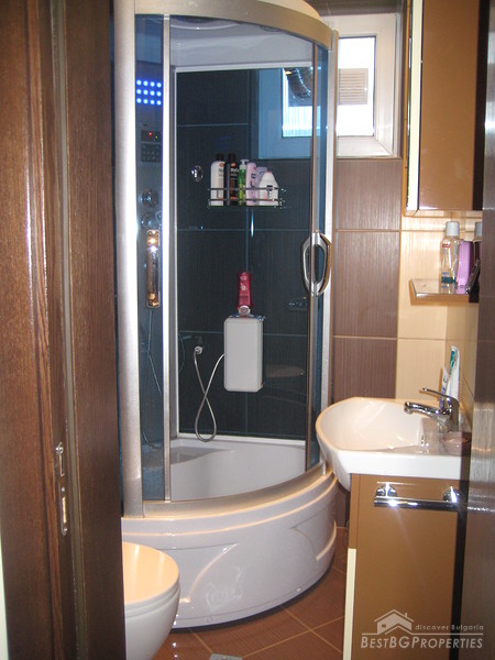 It is situated in a five-storey brick building built 2009. The apartment is on the second floor (the first residential). The building is set in the district Izgrev with excellent infrastructure and location. It is on 10 min driving to the city center and the beach. There are hospitals, schools, technical and economy universities, service-stations, convenient public transportation, etc.