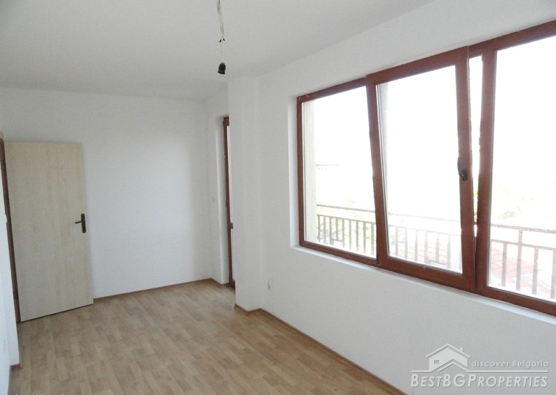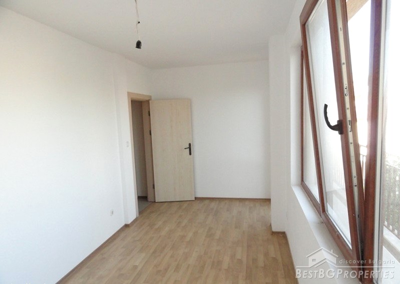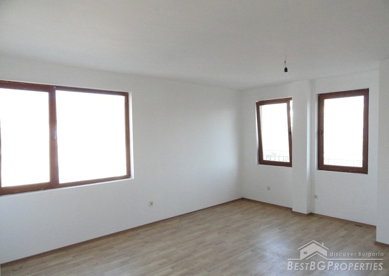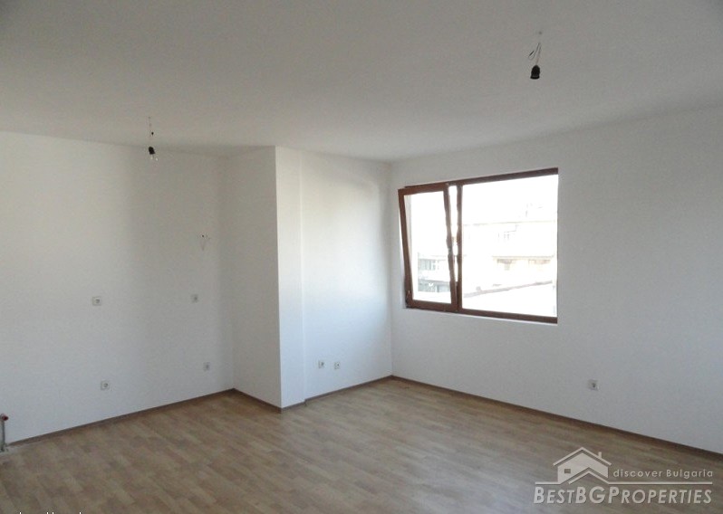 The distribution of the premises inside of the apartment is as fallows: large living room with place for the kitchen, one bedroom, bathroom with WC and a terrace shared by the two rooms. The apartment is finished "on key" stage and has laminated floors and granite tiles, faience fitted bathroom, latex painted walls and ceilings.