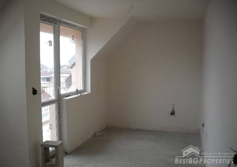 The distribution of the premises inside is as follows: there is a lounge, living room with kitchen box, one bedroom, and a bathroom with WC. There are two balconies – one for each room. From the balconies reveals amazing panoramic view.