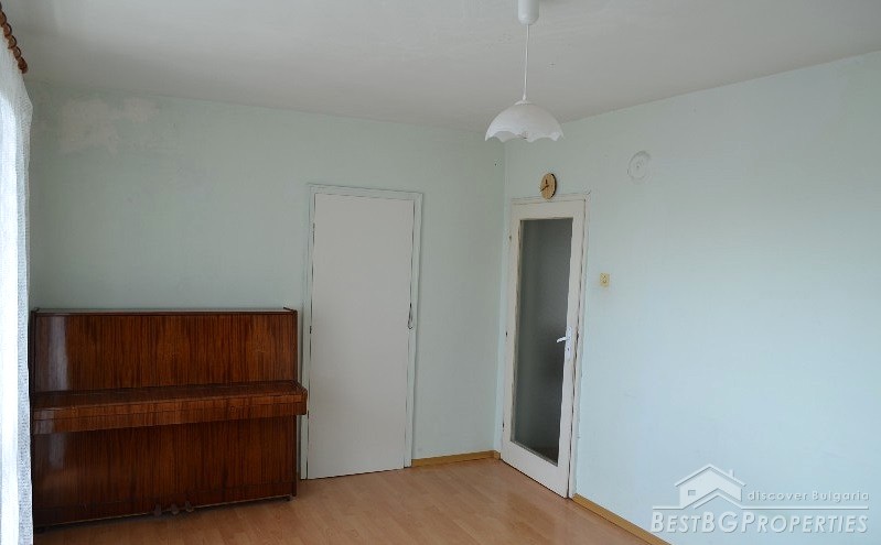 The living area is distributed between a large living room, one bedroom, kitchen, bathroom with WC and a large terrace with sea views. The floors in both rooms have laminate covers. The windows were replaced with PVC.